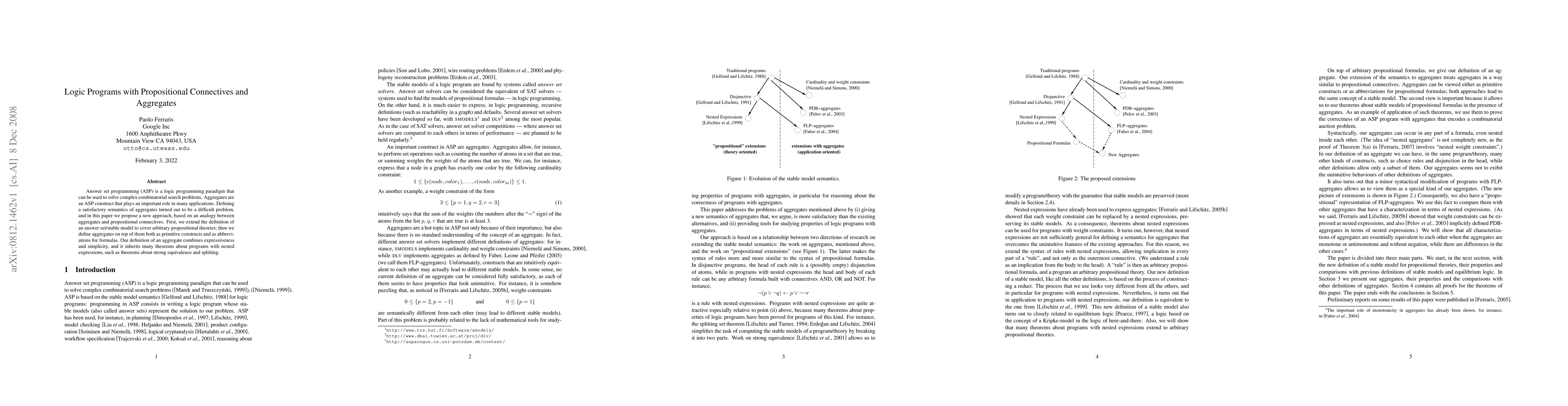 The paper proposes a new approach to defining a satisfactory semantics of aggregates in answer set programming (ASP) based on an analogy with propositional connectives, extending the definition of answer sets/stable models to cover arbitrary propositional theories.