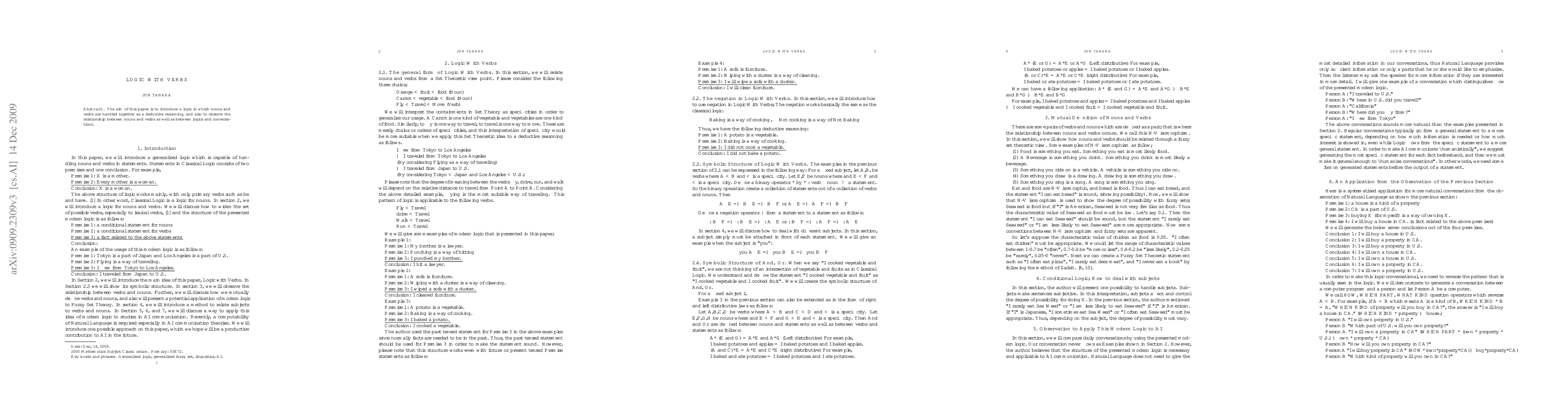 Summary: This paper proposes a novel logic framework that integrates nouns and verbs for deductive reasoning, examining their interplay and the connection between logical structures and conversational dynamics.