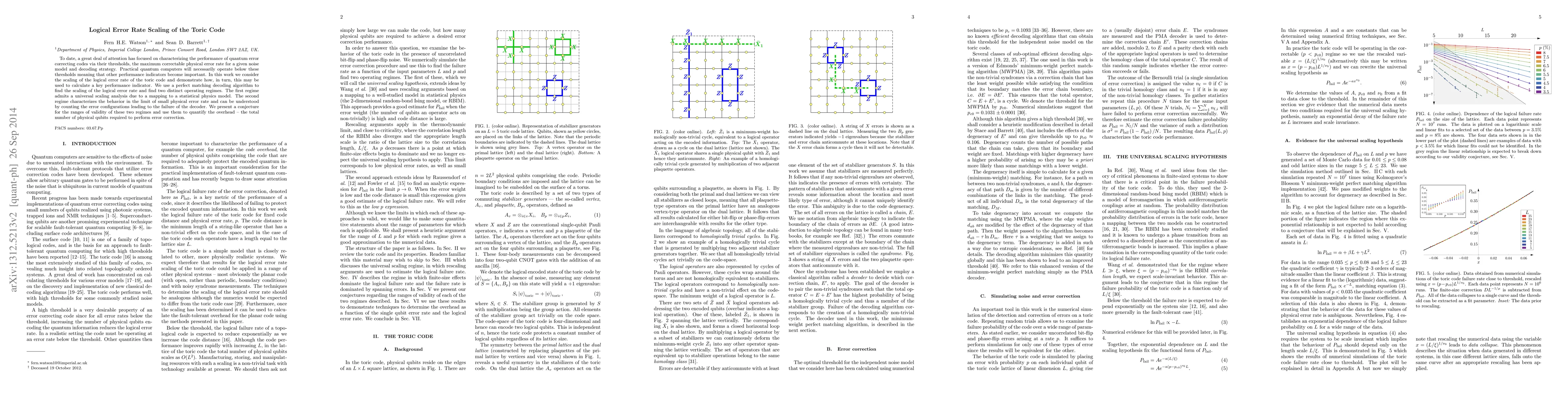 The paper presents a detailed analysis of the toric code's logical error rate scaling, identifying two regimes and providing methods to calculate overhead, which is a critical metric for practical quantum computing.