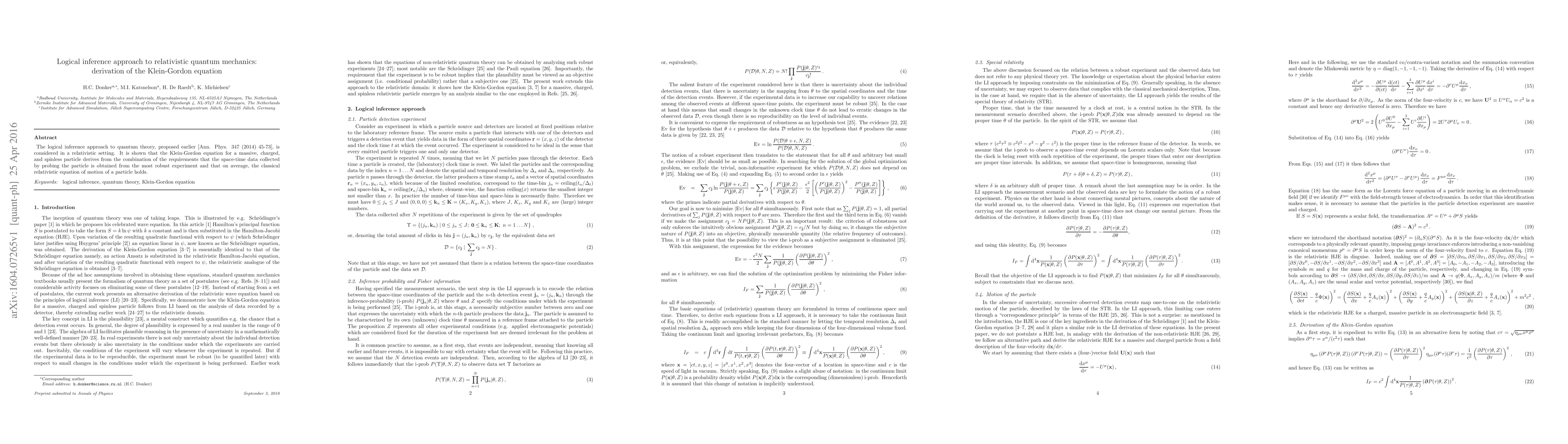 A research paper uses a logical inference approach to derive the Klein-Gordon equation in relativistic quantum mechanics, showing that it arises from combining robust experimental data with classical relativistic motion requirements.