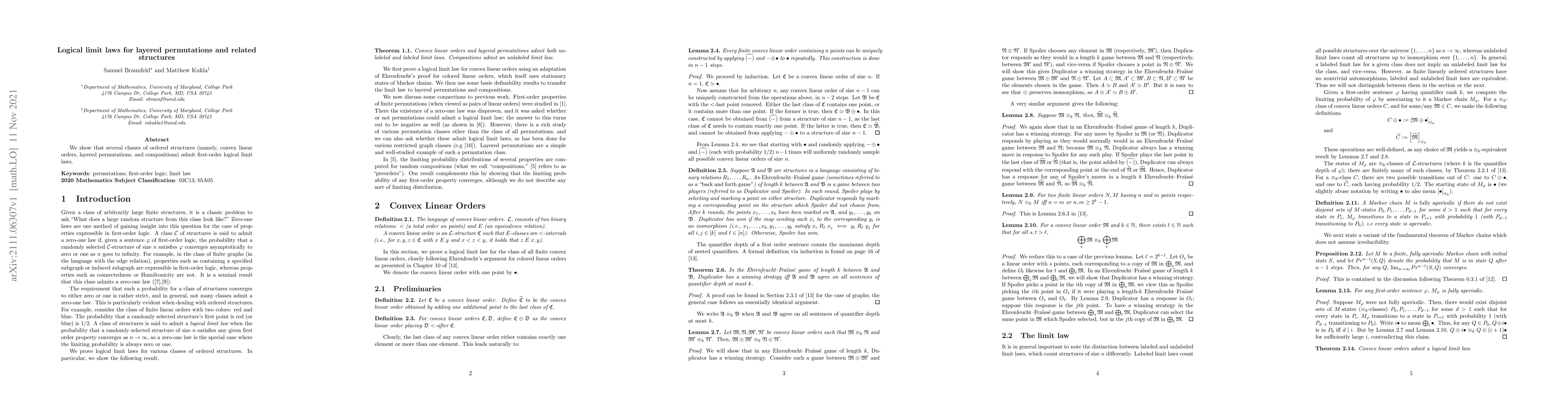 We show that several classes of ordered structures (namely, convex linear orders, layered permutations, and compositions) admit first-order logical limit laws.