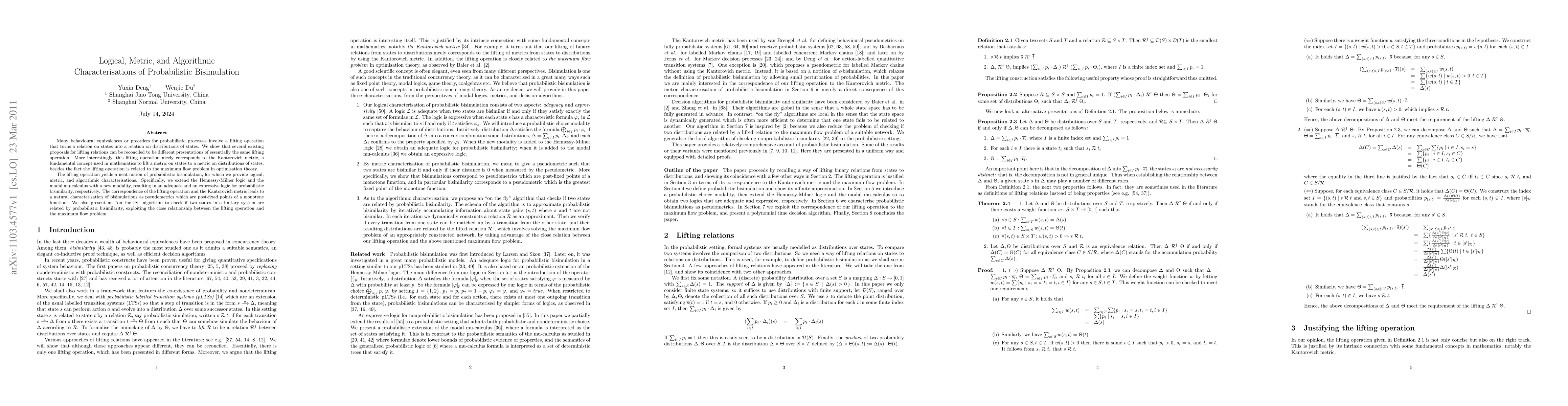 This paper reconciles various proposals for lifting relations in probabilistic processes, showing they are different presentations of the same operation. It connects this lifting to the Kantorovich metric and the maximum flow problem, providing logical, metric, and algorithmic characterisations of probabilistic bisimulation, including an "on the fly" algorithm for checking bisimilarity.