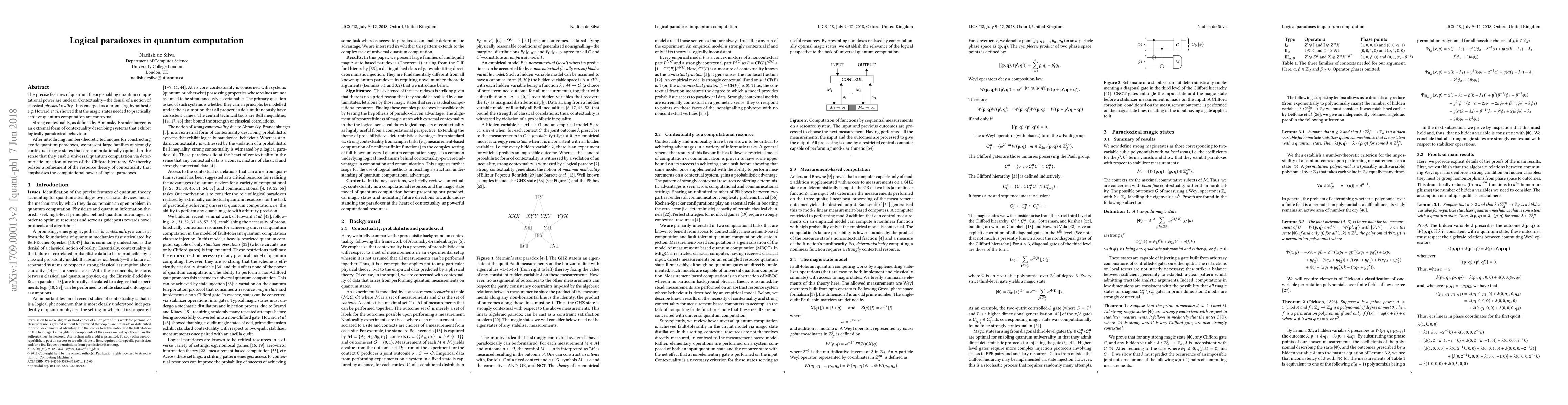 While quantum computers are expected to yield considerable advantages over classical devices, the precise features of quantum theory enabling these advantages remain unclear. Contextuality--the denial of a notion of classical physical reality--has emerged as a promising hypothesis. Magic states are quantum resources critical for practically achieving universal quantum computation. They exhibit the standard form of contextuality that is known to enable probabilistic advantages in a variety of computational and communicational tasks. Strong contextuality is an extremal form of contextuality describing systems that exhibit logically paradoxical behaviour. Here, we consider special magic states that deterministically enable quantum computation. After introducing number-theoretic techniques for constructing exotic quantum paradoxes, we present large classes of strongly contextual magic states that enable deterministic implementation of gates from the Clifford hierarchy. These surprising discoveries bolster a refinement of the resource theory of contextuality that emphasises the computational power of logical paradoxes.