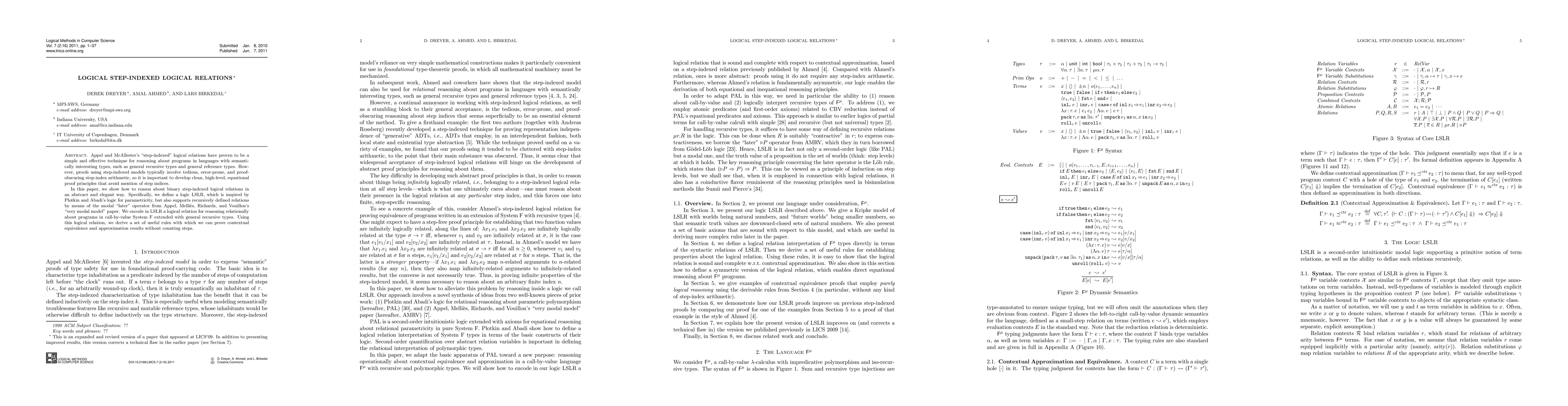 This paper introduces LSLR, a logic inspired by parametricity and modal operators, to reason elegantly about binary step-indexed logical relations. It enables proving contextual equivalence and approximation results in call-by-value System F with general recursive types without the need for step-index arithmetic.