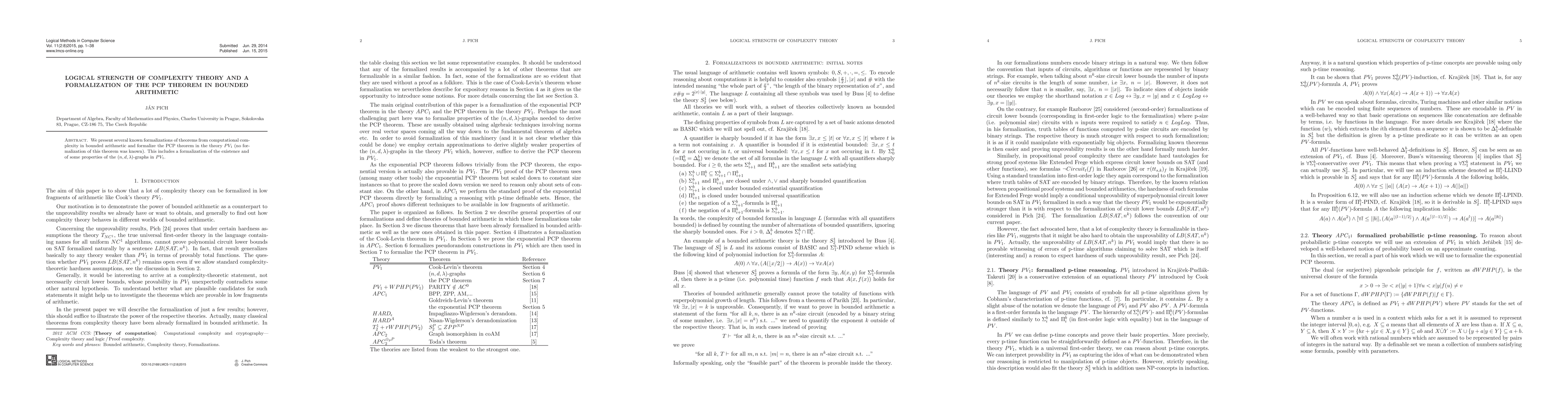 Researchers formalize the PCP theorem in bounded arithmetic theory PV1, providing a new understanding of complex graphs and their properties. This work advances the field of computational complexity and its application to theoretical computer science.