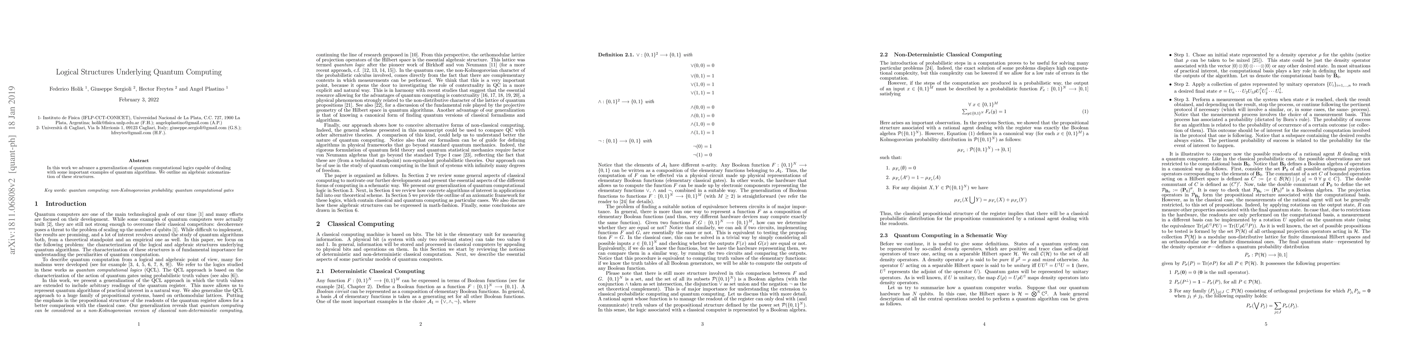 In this work we advance a generalization of quantum computational logics capable of dealing with some important examples of quantum algorithms. We outline an algebraic axiomatization of these structures.