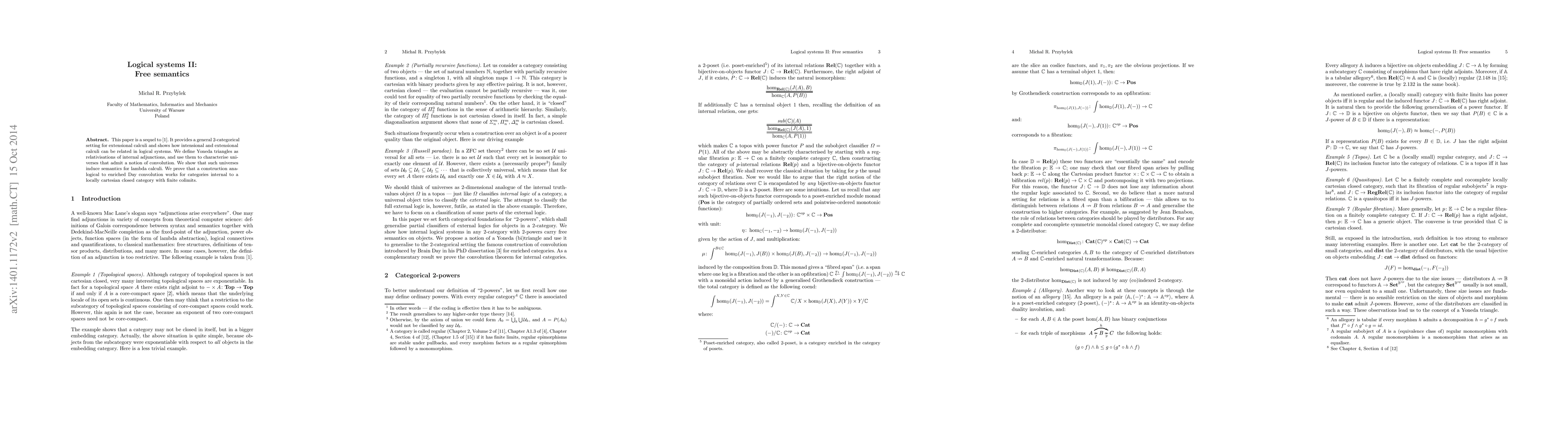 This paper is a sequel to "Logical systems I: Lambda calculi through discreteness". It provides a general 2-categorical setting for extensional calculi and shows how intensional and extensional calculi can be related in logical systems. We define Yoneda triangles as relativisations of internal adjunctions, and use them to characterise universes that admit a notion of convolution. We show that such universes induce semantics for lambda calculi. We prove that a construction analogical to enriched Day convolution works for categories internal to a locally cartesian closed category with finite colimits.
