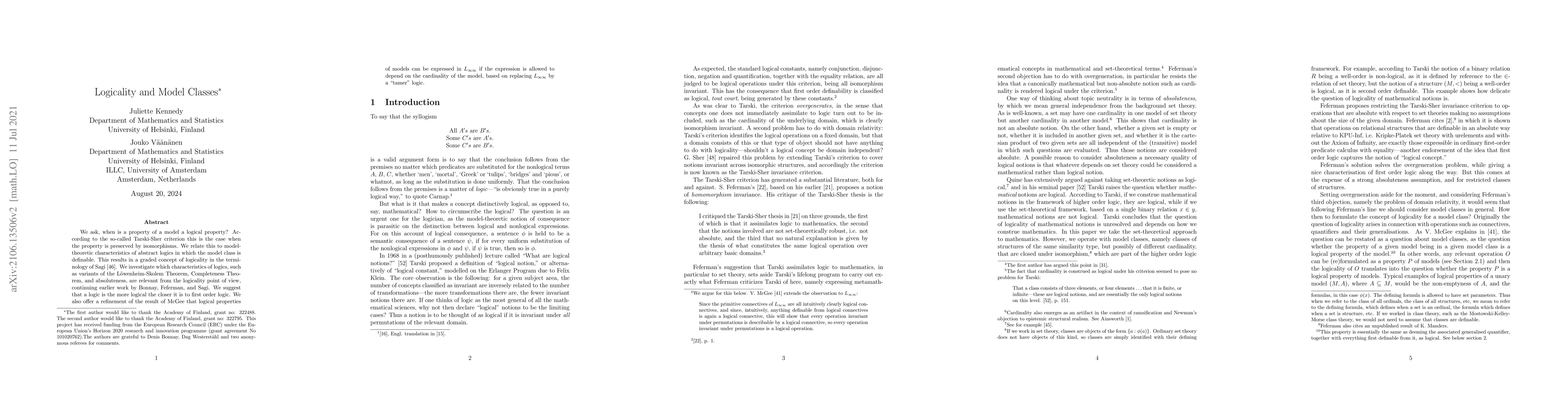 We ask, when is a property of a model a logical property? According to the so-called Tarski-Sher criterion this is the case when the property is preserved by isomorphisms. We relate this to model-theoretic characteristics of abstract logics in which the model class is definable. This results in a graded concept of logicality in the terminology of Sagi. We investigate which characteristics of logics, such as variants of the L\"owenheim-Skolem Theorem, Completeness Theorem, and absoluteness, are relevant from the logicality point of view, continuing earlier work by Bonnay, Feferman, and Sagi. We suggest that a logic is the more logical the closer it is to first order logic. We also offer a refinement of the result of McGee that logical properties of models can be expressed in $L_{\infty\infty}$ if the expression is allowed to depend on the cardinality of the model, based on replacing $L_{\infty\infty}$ by a ``tamer" logic.