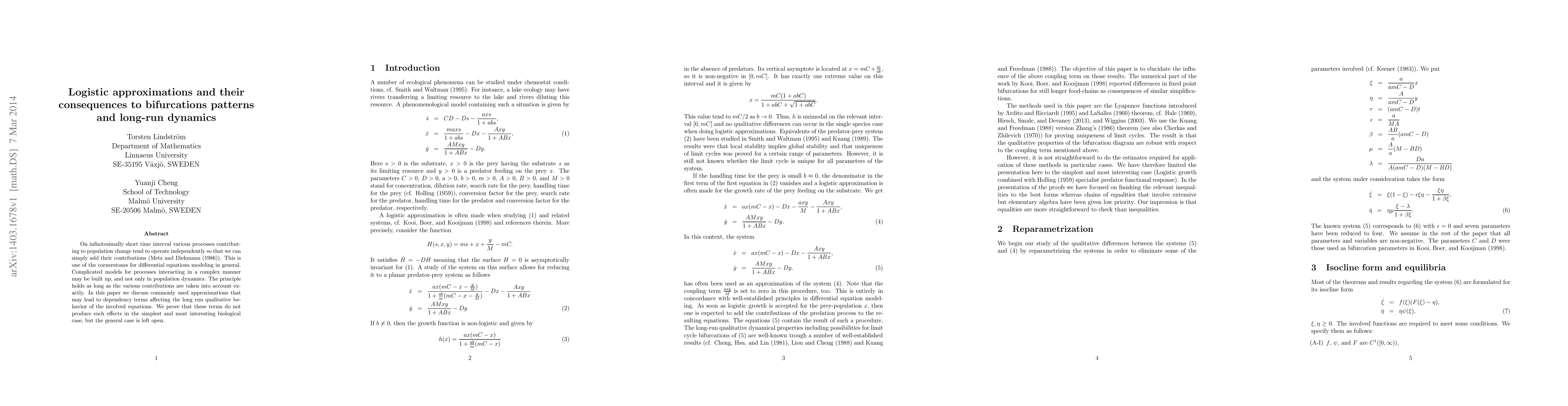 This paper examines the impact of logistic approximations on the bifurcation patterns and long-term dynamics in differential equations modeling, particularly in population dynamics. It demonstrates that while approximations can introduce dependency terms, these do not affect the simplest biological cases, leaving the general case for future exploration.