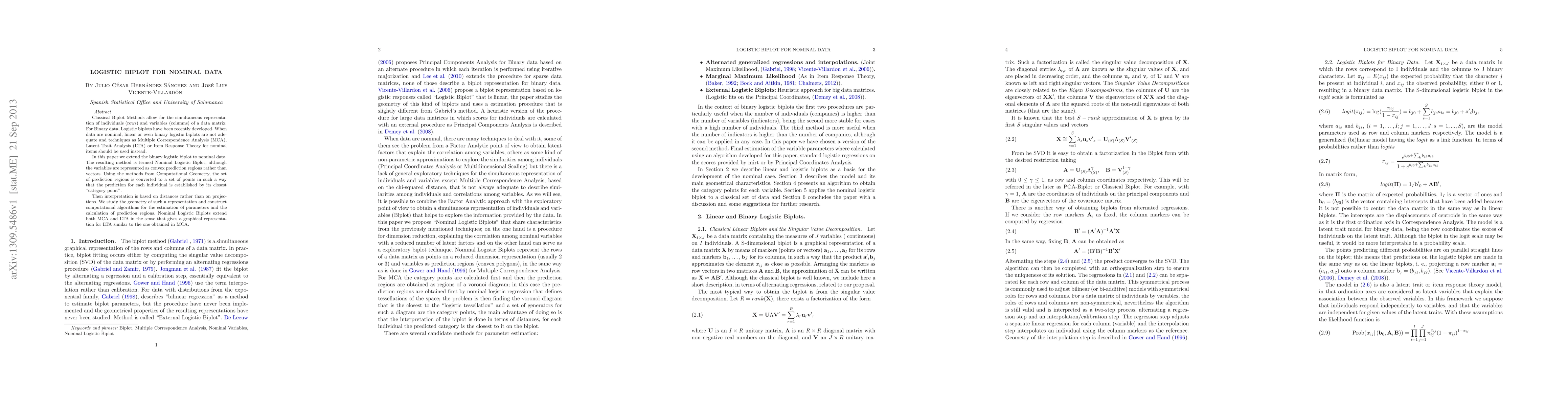 This paper introduces the Nominal Logistic Biplot, an extension of logistic biplots for nominal data, replacing linear or binary methods with techniques like Multiple Correspondence Analysis. It uses computational geometry to represent nominal variables as convex prediction regions, enabling graphical interpretation based on distances rather than projections.