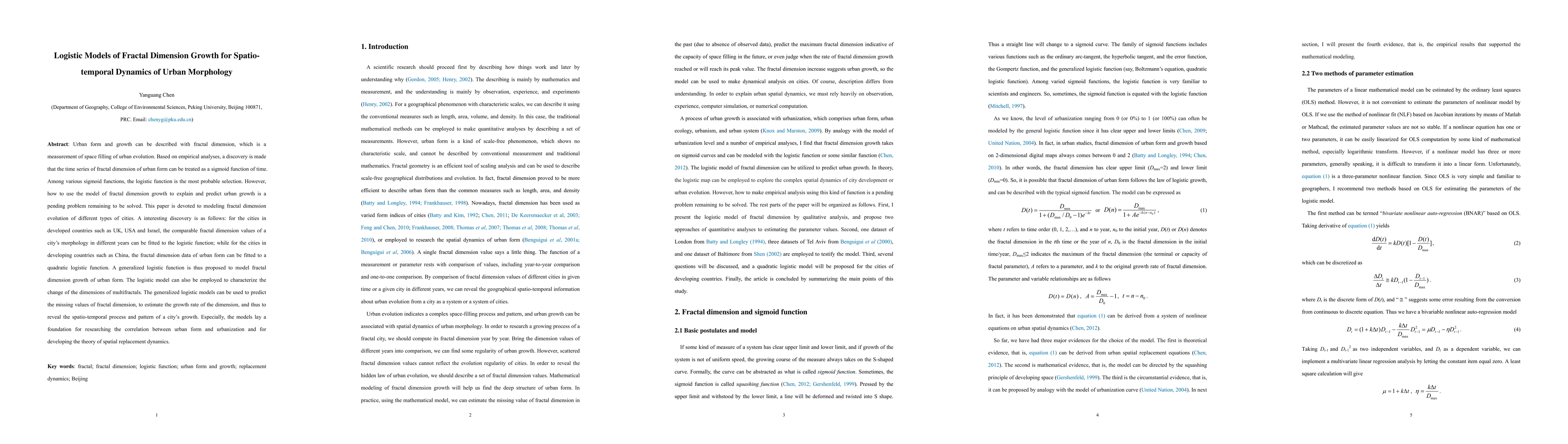 This paper develops logistic models to describe the fractal dimension growth in urban morphology, finding that developed cities follow logistic functions while developing cities fit quadratic logistic functions. The proposed generalized logistic model aids in predicting fractal dimension values, estimating growth rates, and understanding the spatio-temporal dynamics of urban growth.