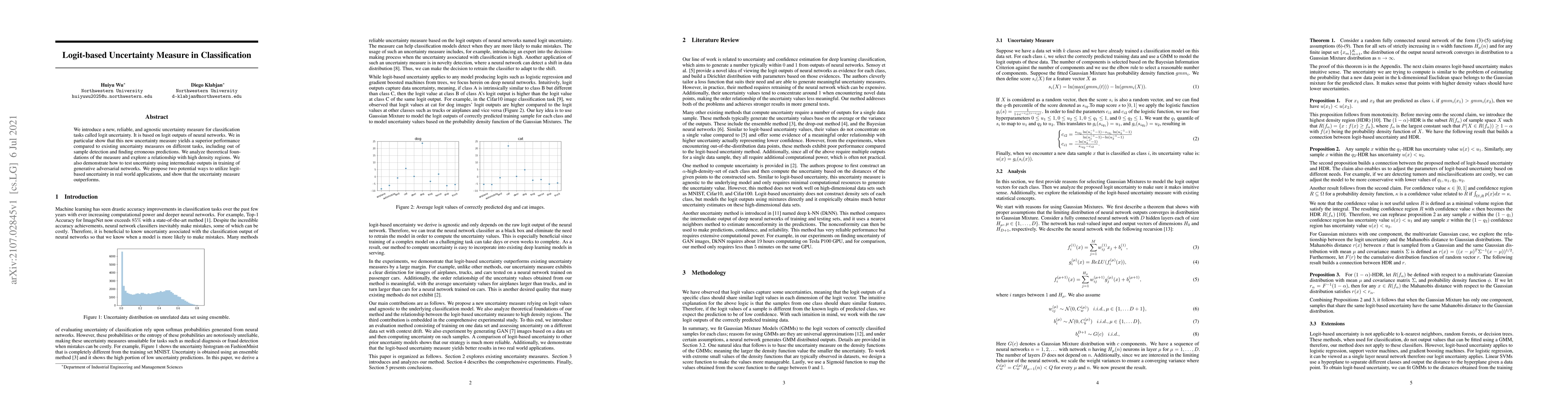 We introduce a new, reliable, and agnostic uncertainty measure for classification tasks called logit uncertainty. It is based on logit outputs of neural networks. We in particular show that this new uncertainty measure yields a superior performance compared to existing uncertainty measures on different tasks, including out of sample detection and finding erroneous predictions. We analyze theoretical foundations of the measure and explore a relationship with high density regions. We also demonstrate how to test uncertainty using intermediate outputs in training of generative adversarial networks. We propose two potential ways to utilize logit-based uncertainty in real world applications, and show that the uncertainty measure outperforms.