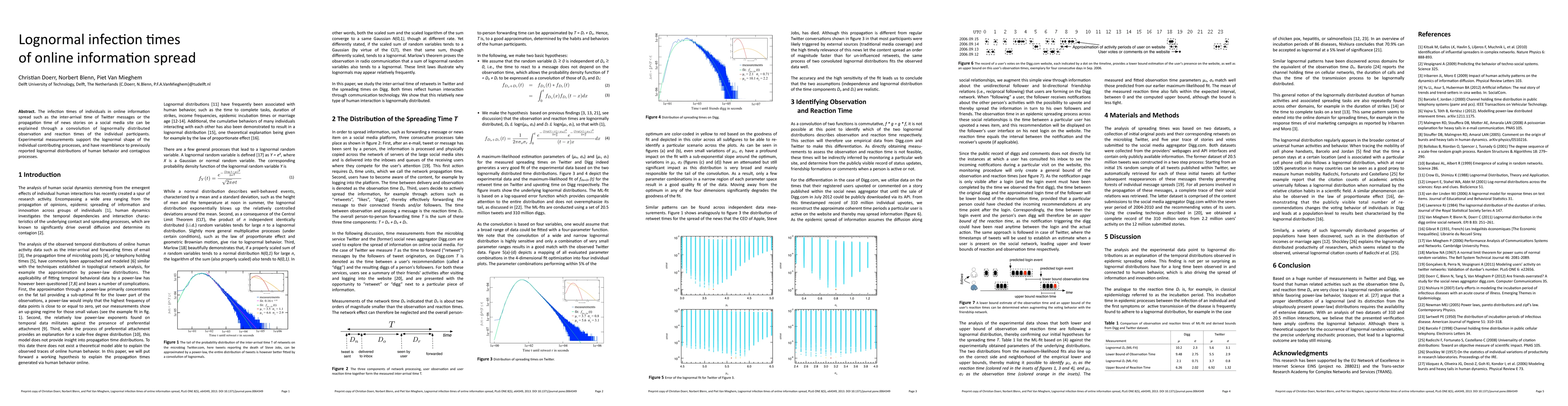 The infection times of individuals in online information spread such as the inter-arrival time of Twitter messages or the propagation time of news stories on a social media site can be explained through a convolution of lognormally distributed observation and reaction times of the individual participants. Experimental measurements support the lognormal shape of the individual contributing processes, and have resemblance to previously reported lognormal distributions of human behavior and contagious processes.