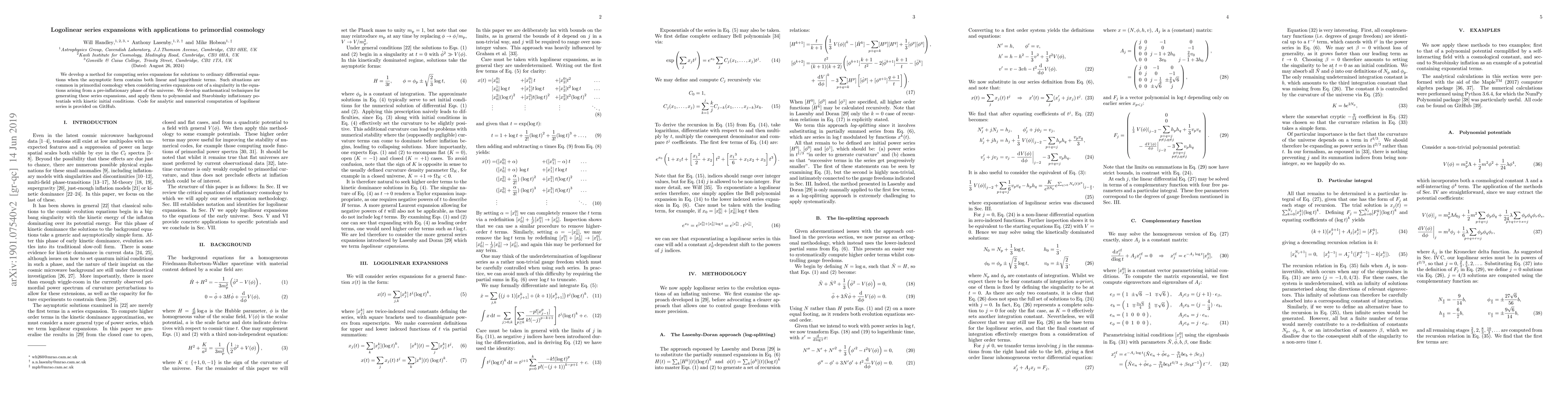We develop a method for computing series expansions for solutions to ordinary differential equations when the asymptotic form contains both linear and logarithmic terms. Such situations are common in primordial cosmology when considering series expansions out of a singularity in the equations arising from a pre-inflationary phase of the universe. We develop mathematical techniques for generating these series expansions, and apply them to polynomial and Starobinsky inflationary potentials with kinetic initial conditions. Code for analytic and numerical computation of logolinear series is provided on GitHub.