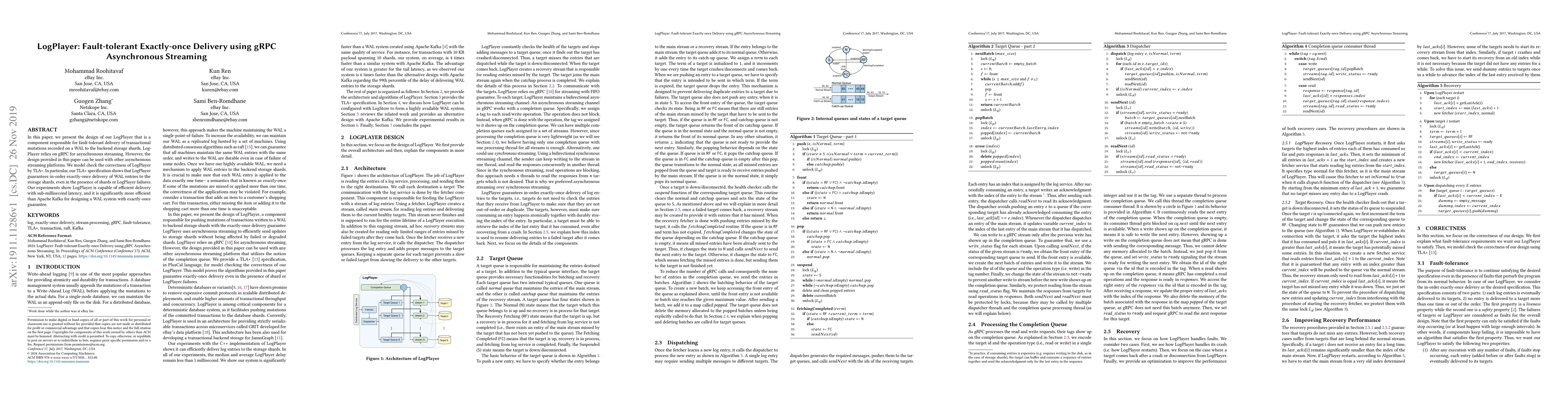 LogPlayer is a fault-tolerant component for delivering transactional mutations using gRPC asynchronous streaming, ensuring in-order exactly-once delivery even with failures. Experiments demonstrate its efficiency and lower latency compared to Apache Kafka.