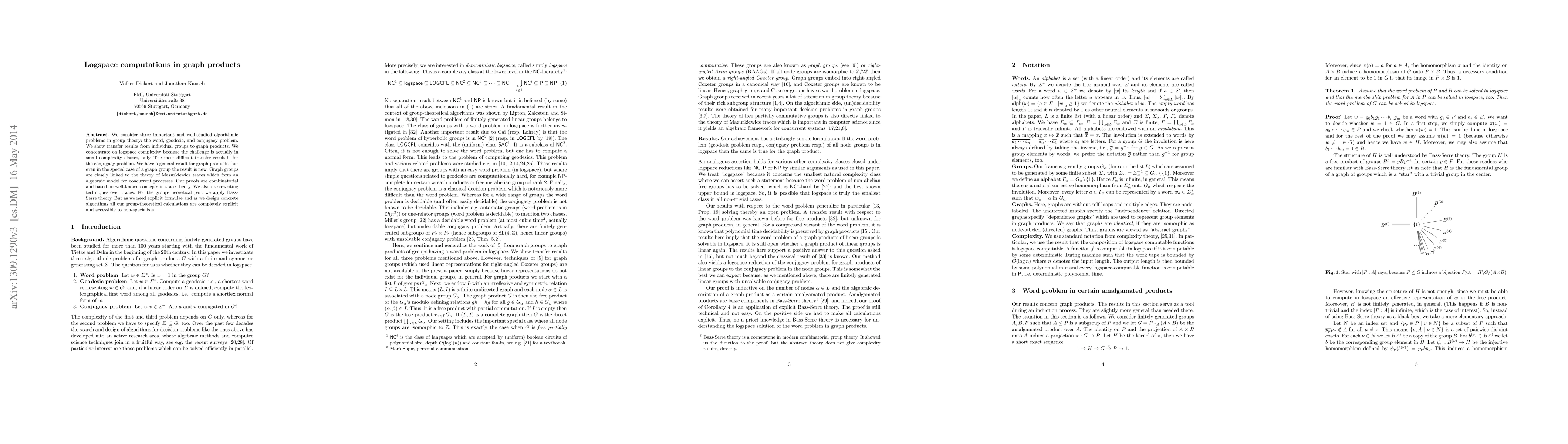 We consider three important and well-studied algorithmic problems in group theory: the word, geodesic, and conjugacy problem. We show transfer results from individual groups to graph products. We concentrate on logspace complexity because the challenge is actually in small complexity classes, only. The most difficult transfer result is for the conjugacy problem. We have a general result for graph products, but even in the special case of a graph group the result is new. Graph groups are closely linked to the theory of Mazurkiewicz traces which form an algebraic model for concurrent processes. Our proofs are combinatorial and based on well-known concepts in trace theory. We also use rewriting techniques over traces. For the group-theoretical part we apply Bass-Serre theory. But as we need explicit formulae and as we design concrete algorithms all our group-theoretical calculations are completely explicit and accessible to non-specialists.