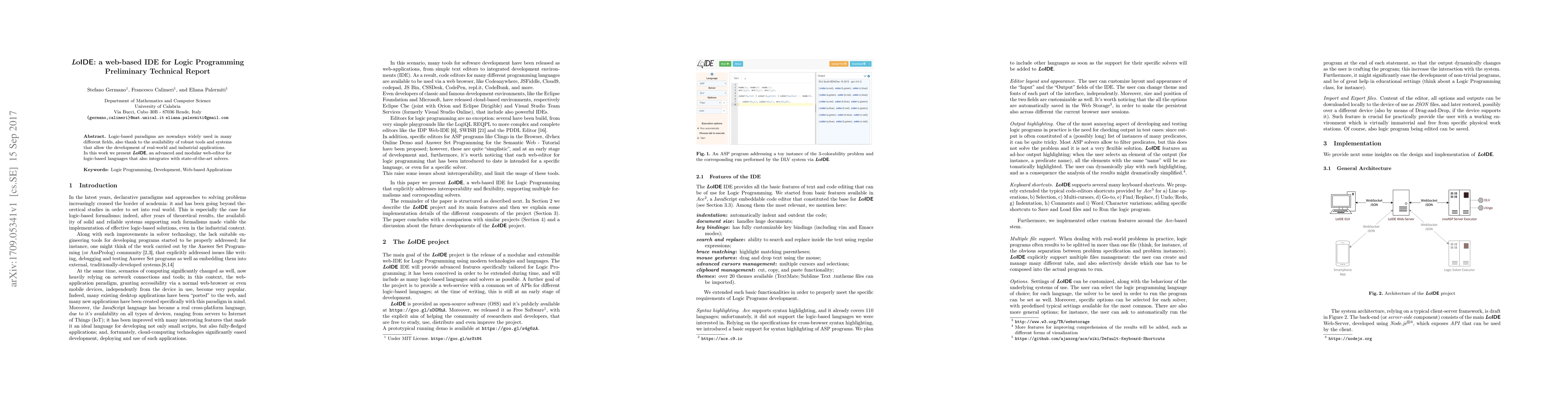 Logic-based paradigms are nowadays widely used in many different fields, also thank to the availability of robust tools and systems that allow the development of real-world and industrial applications. In this work we present LoIDE, an advanced and modular web-editor for logic-based languages that also integrates with state-of-the-art solvers.