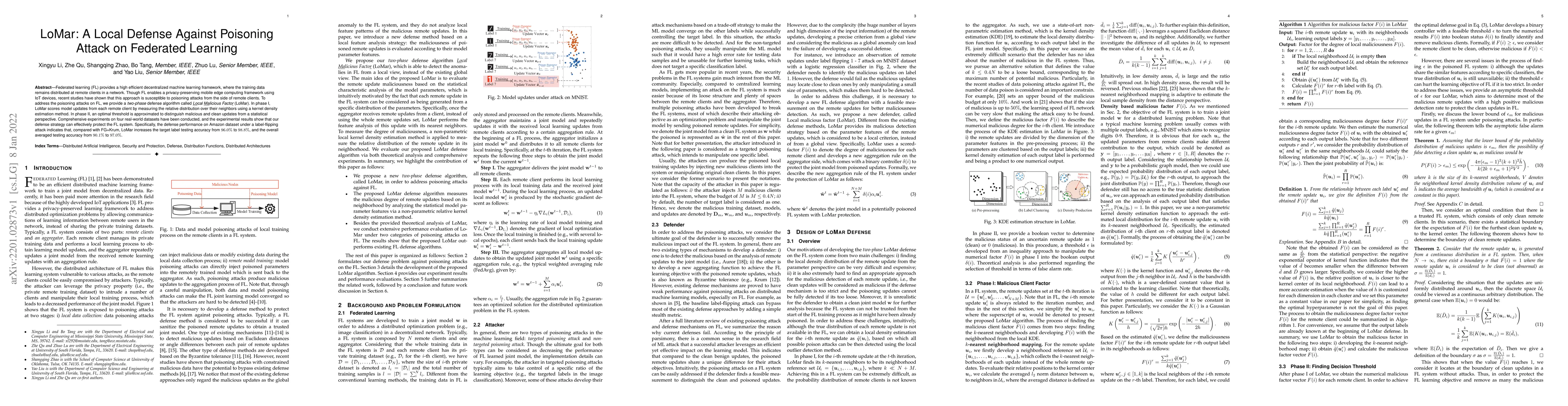 LoMar is a two-phase defense algorithm designed to counter poisoning attacks in federated learning, enhancing the accuracy of model updates by distinguishing between malicious and clean updates. Experimental results show significant improvements in testing accuracy, particularly under label-flipping attacks.