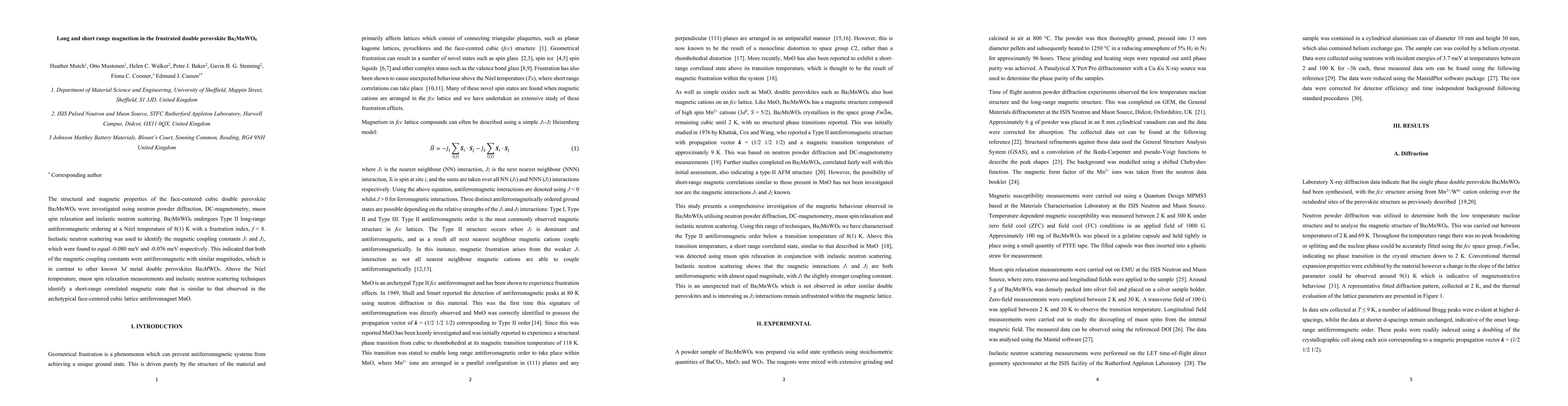 The structural and magnetic properties of the face-centered cubic double perovskite Ba2MnWO6 were investigated using neutron powder diffraction, DC-magnetometry, muon spin relaxation and inelastic neutron scattering. Ba2MnWO6 undergoes Type II long-range antiferromagnetic ordering at a Neel temperature of 8(1) K with a frustration index, f = 8. Inelastic neutron scattering was used to identify the magnetic coupling constants J1 and J2, which were found to equal -0.080 meV and -0.076 meV respectively. This indicated that both of the magnetic coupling constants were antiferromagnetic with similar magnitudes, which is in contrast to other known 3d metal double perovskites Ba2MWO6. Above the Neel temperature, muon spin relaxation measurements and inelastic neutron scattering techniques identify a short-range correlated magnetic state that is similar to that observed in the archetypical face-centered cubic lattice antiferromagnet MnO.