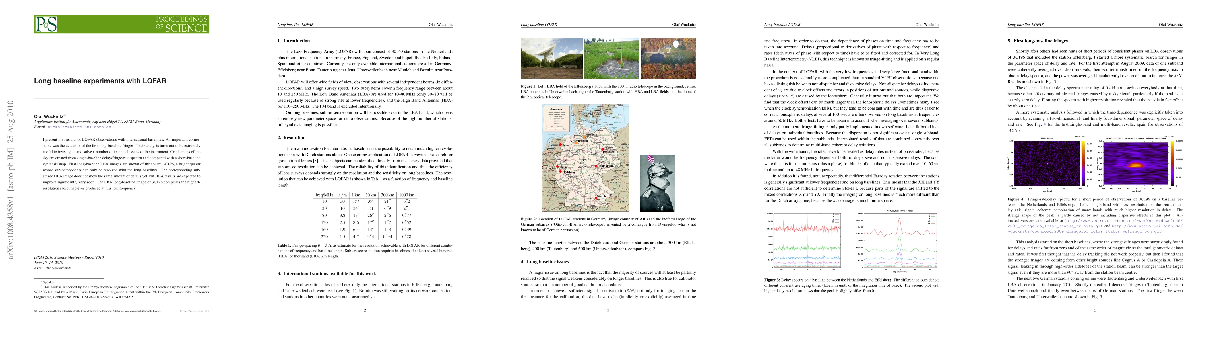 I present first results of LOFAR observations with international baselines. An important cornerstone was the detection of the first long-baseline fringes. Their analysis turns out to be extremely useful to investigate and solve a number of technical issues of the instrument. Crude maps of the sky are created from single-baseline delay/fringe-rate spectra and compared with a short-baseline synthesis map. First long-baseline LBA images are shown of the source 3C196, a bright quasar whose sub-components can only be resolved with the long baselines. The corresponding sub-arcsec HBA image does not show the same amount of details yet, but HBA results are expected to improve significantly very soon. The LBA long-baseline image of 3C196 comprises the highest-resolution radio map ever produced at this low frequency.