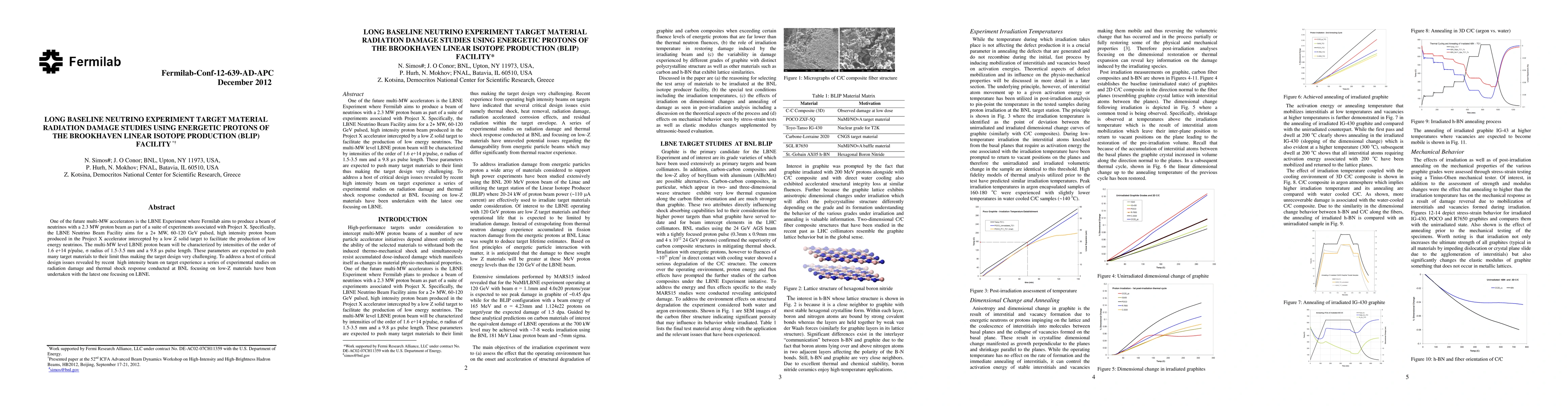 One of the future multi-MW accelerators is the LBNE Experiment where Fermilab aims to produce a beam of neutrinos with a 2.3 MW proton beam as part of a suite of experiments associated with Project X. Specifically, the LBNE Neutrino Beam Facility aims for a 2+ MW, 60 -120 GeV pulsed, high intensity proton beam produced in the Project X accelerator intercepted by a low Z solid target to facilitate the production of low energy neutrinos. The multi-MW level LBNE proton beam will be characterized by intensities of the order of 1.6 e+14 p/pulse, {\sigma} radius of 1.5 -3.5 mm and a 9.8 microsecond pulse length. These parameters are expected to push many target materials to their limit thus making the target design very challenging. To address a host of critical design issues revealed by recent high intensity beam on target experience a series of experimental studies on radiation damage and thermal shock response conducted at BNL focusing on low-Z materials have been undertaken with the latest one focusing on LBNE.