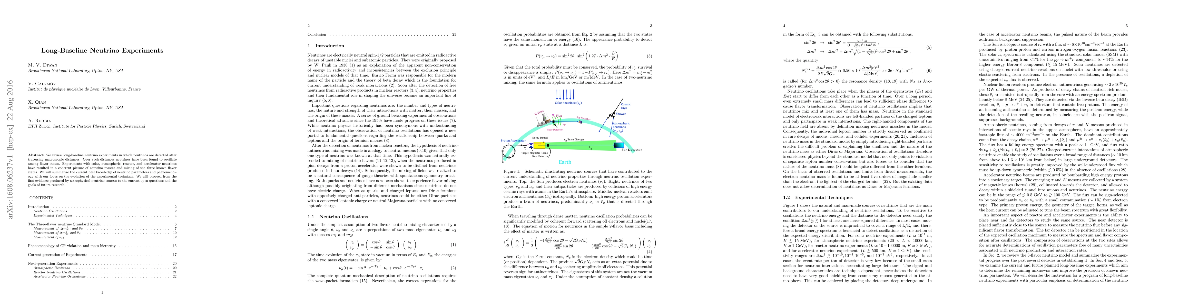 This paper reviews long-baseline neutrino experiments that detect oscillations among flavor states over macroscopic distances, summarizing current knowledge of neutrino masses and mixing, and highlighting the evolution of experimental techniques from early astrophysical sources to future research goals.