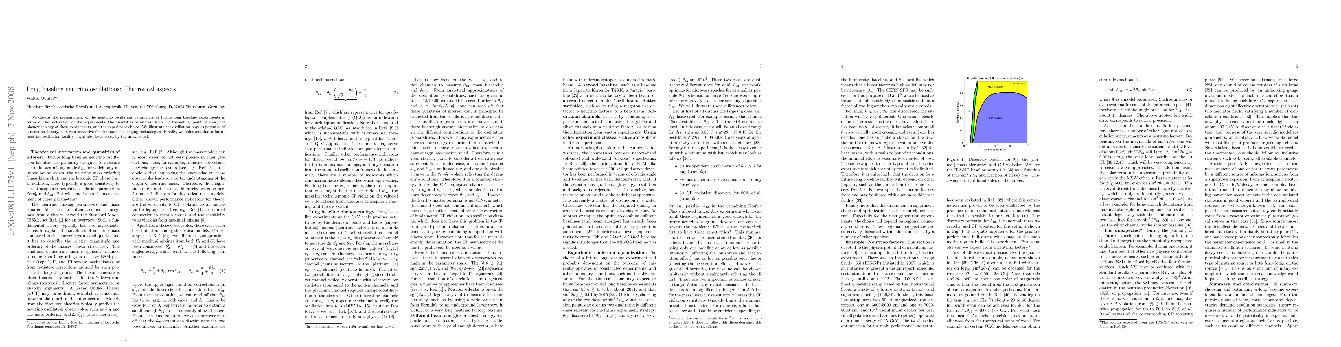 We discuss the measurement of the neutrino oscillation parameters at future long baseline experiments in terms of the motivation of the experiments, the quantities of interest from the theoretical point of view, the phenomenology of these experiments, and the experiment choice. We illustrate the oscillation physics potential of a neutrino factory, as a representative for the most challenging technologies. Finally, we point out that a future neutrino oscillation facility might also be affected by the unexpected.