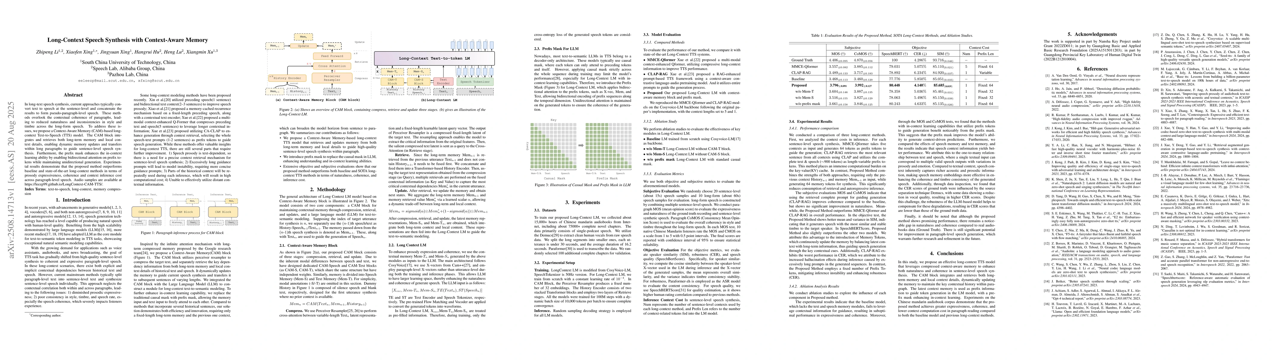 The paper proposes a Context-Aware Memory (CAM)-based long-context Text-to-Speech (TTS) model that integrates and retrieves both long-term memory and local context details for dynamic memory updates within paragraphs. It also introduces a prefix mask to enhance in-context learning ability in the large language model (LLM).