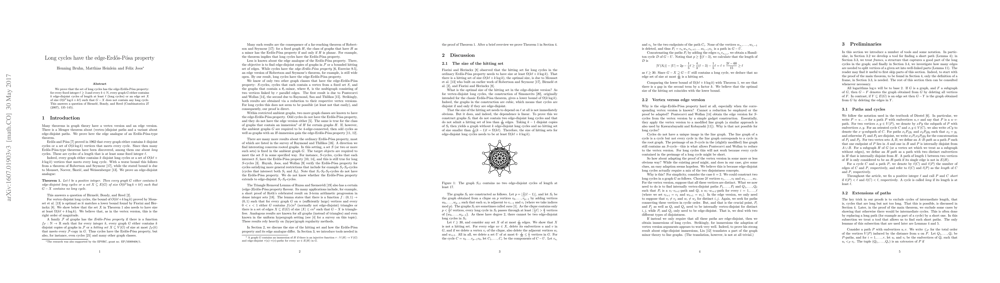 We prove that the set of long cycles has the edge-Erd\H{o}s-P\'osa property: for every fixed integer $\ell\ge 3$ and every $k\in\mathbb{N}$, every graph $G$ either contains $k$ edge-disjoint cycles of length at least $\ell$ (long cycles) or an edge set $X$ of size $O(k^2\log k + \ell k)$ such that $G-X$ does not contain any long cycle. This answers a question of Birmel\'e, Bondy, and Reed (Combinatorica 27 (2007), 135--145).