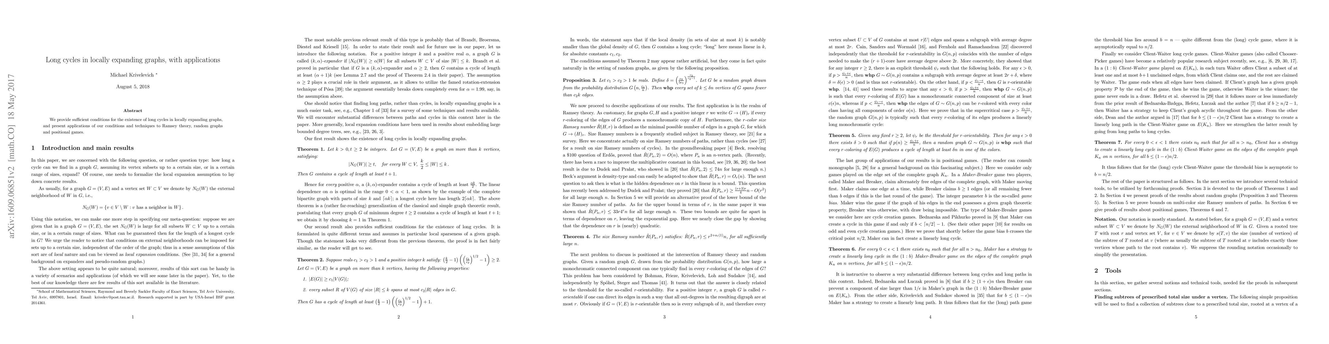 We provide sufficient conditions for the existence of long cycles in locally expanding graphs, and present applications of our conditions and techniques to Ramsey theory, random graphs and positional games.