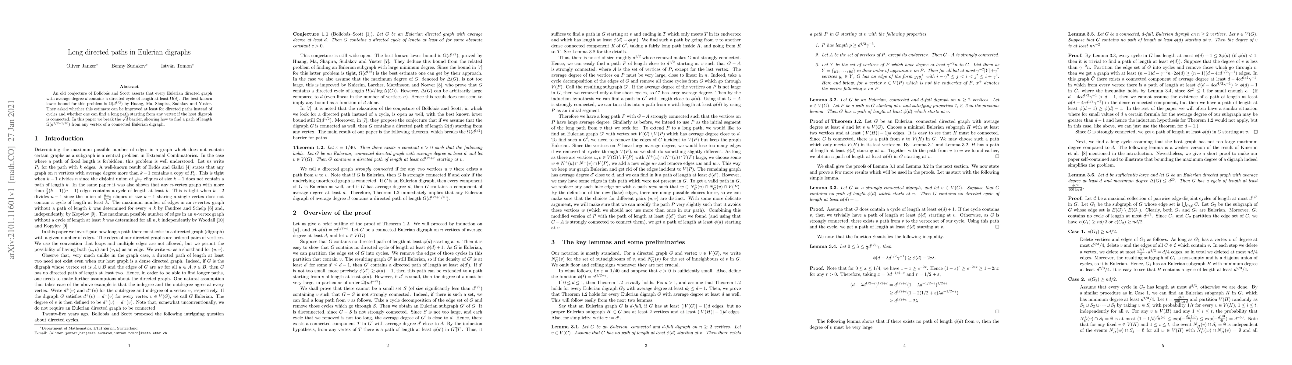 This paper resolves a conjecture by Bollobás and Scott by proving that every connected Eulerian digraph with average degree $d$ contains a directed path of length $\Omega(d^{1/2+1/40})$, surpassing the previous $\Omega(d^{1/2})$ lower bound.