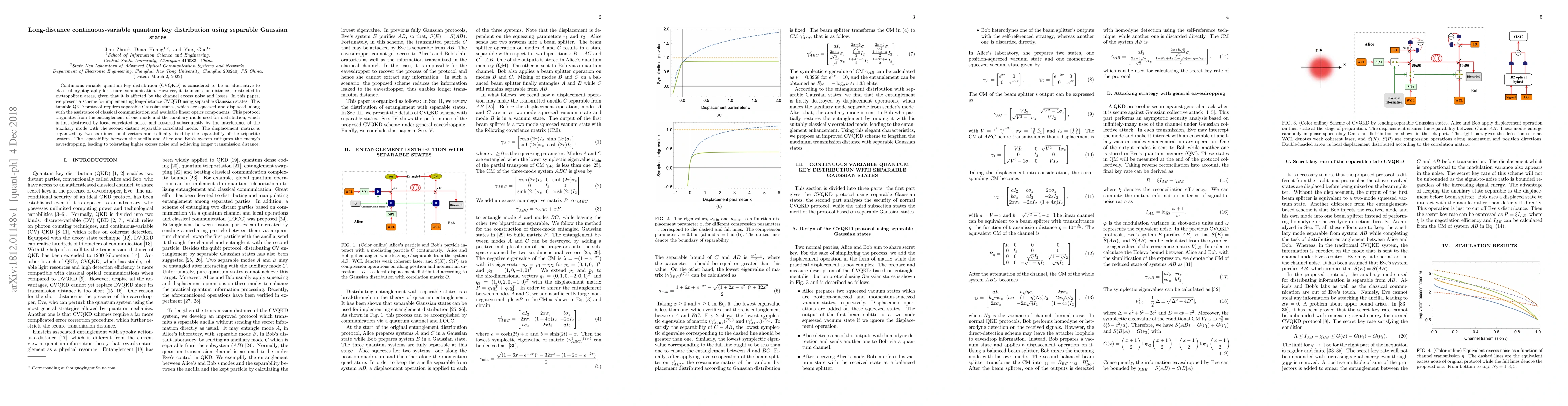 This paper presents a long-distance continuous-variable quantum key distribution (CVQKD) scheme using separable Gaussian states, which leverages squeezed and displaced states, classical communication, and linear optics to overcome channel noise and extend transmission distance. The protocol's separability enhances security and allows for higher noise tolerance, thus achieving greater transmission ranges.