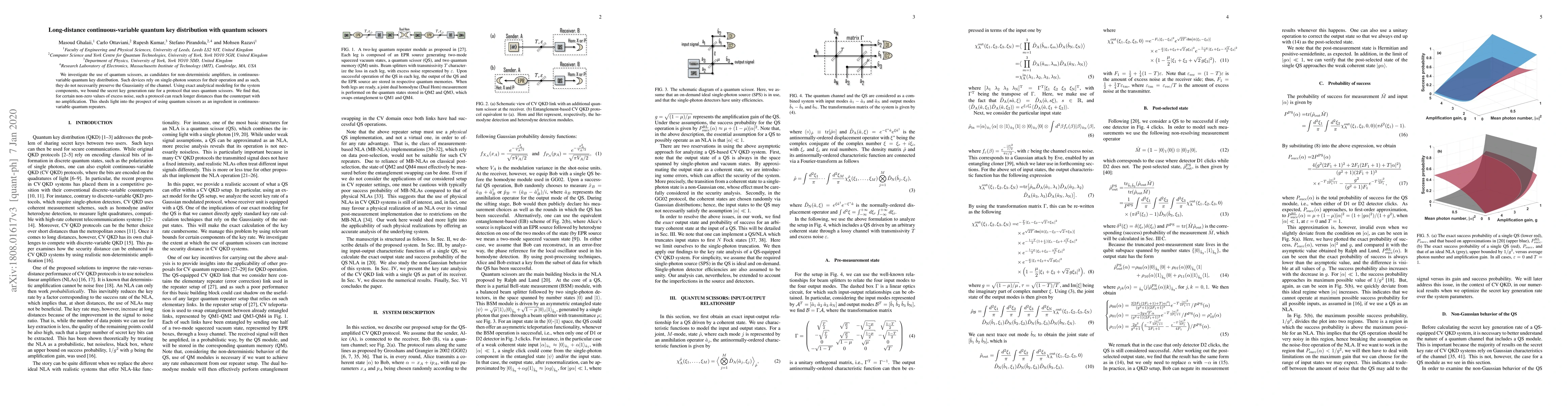 This paper investigates the use of quantum scissors in continuous-variable quantum key distribution, demonstrating that they can enable longer-distance key distribution despite excess noise. Analytical modeling shows that quantum scissors can surpass the key generation rate of non-amplified systems, promising their application in quantum repeaters.