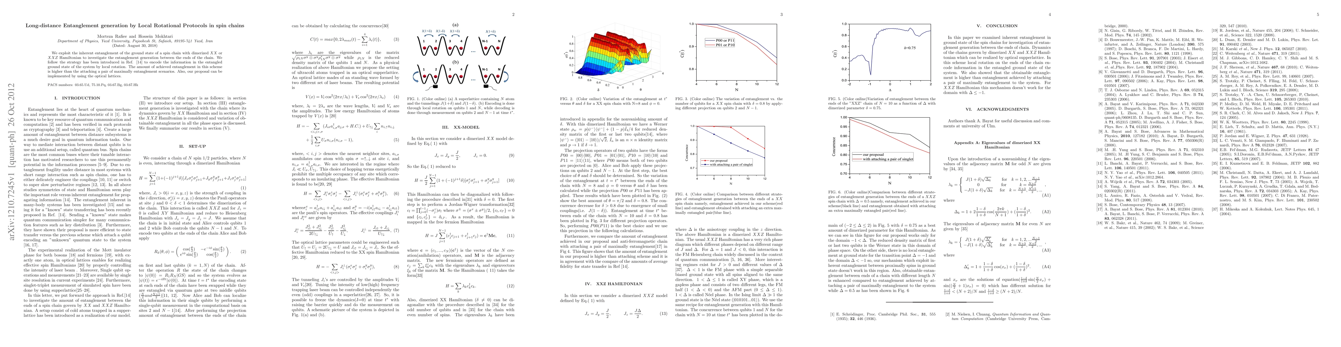 We exploit the inherent entanglement of the ground state of a spin chain with dimerized XX or XXZ Hamiltonian to investigate the entanglement generation between the ends of the chain. We follow the strategy has been introduced in Ref. [14] to encode the information in the entangled ground state of the system by local rotation. The amount of achieved entanglement in this scheme is higher than the attaching a pair of maximally entanglement scenarios. Also, our proposal can be implemented by using the optical lattices.
