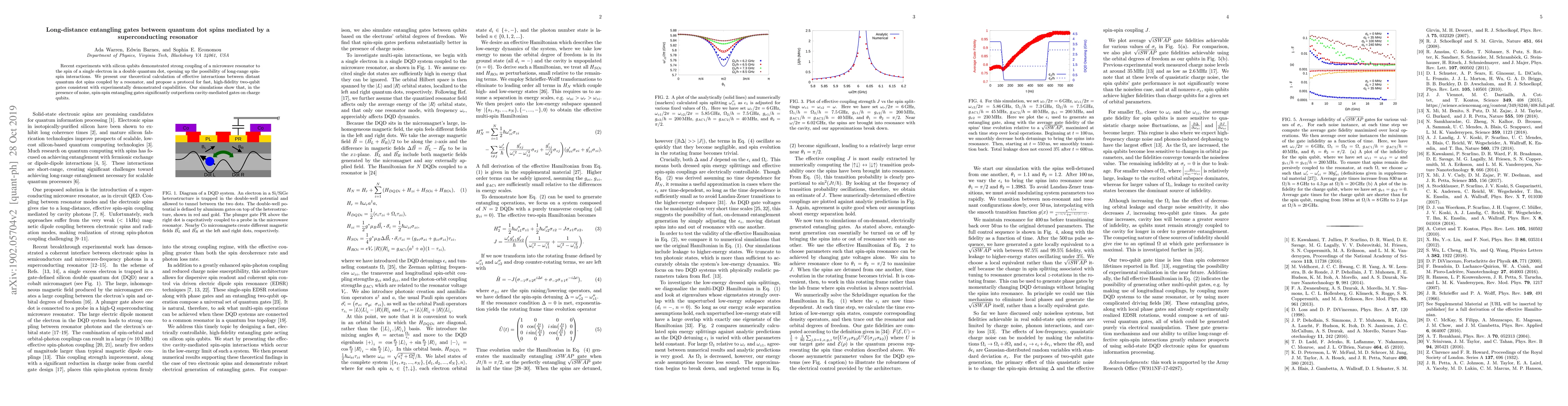 The paper proposes a theoretical model for long-range entangling gates between quantum dot spins mediated by a superconducting microwave resonator, demonstrating its potential for high-fidelity operations compared to conventional cavity-mediated gates, especially in noisy environments. Simulations indicate superior performance of spin-spin entangling gates in this setup.