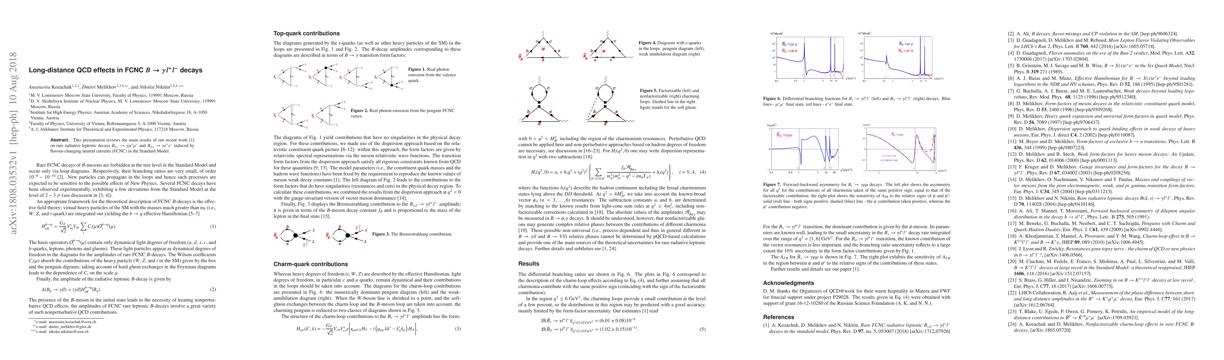 Researchers studied rare B-meson decays to gamma and leptons, revealing potential long-distance QCD effects from FCNC interactions. The findings have implications for understanding the Standard Model's limits.