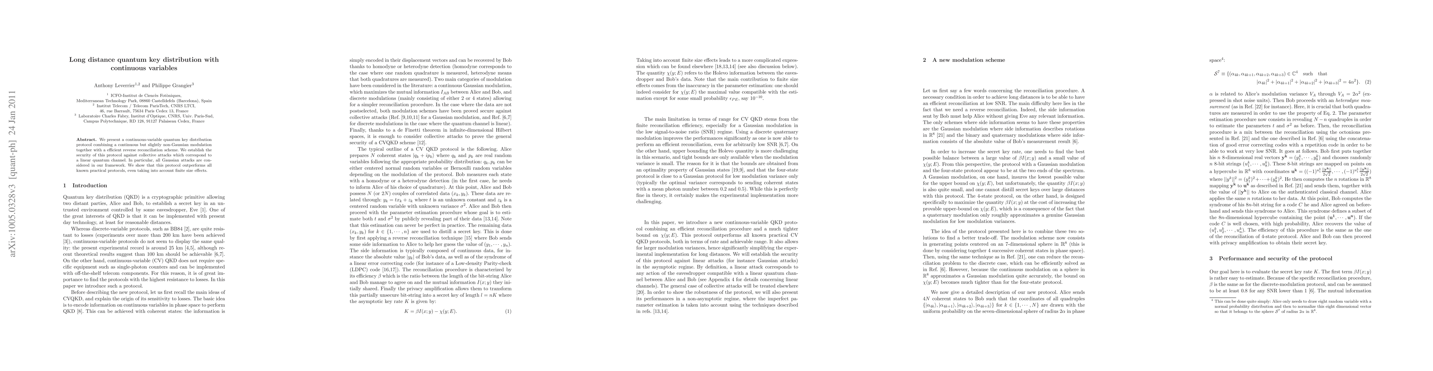 Researchers developed a quantum key distribution protocol that outperforms existing methods, using continuous variable modulation and efficient reconciliation to secure long-distance communication against collective attacks.