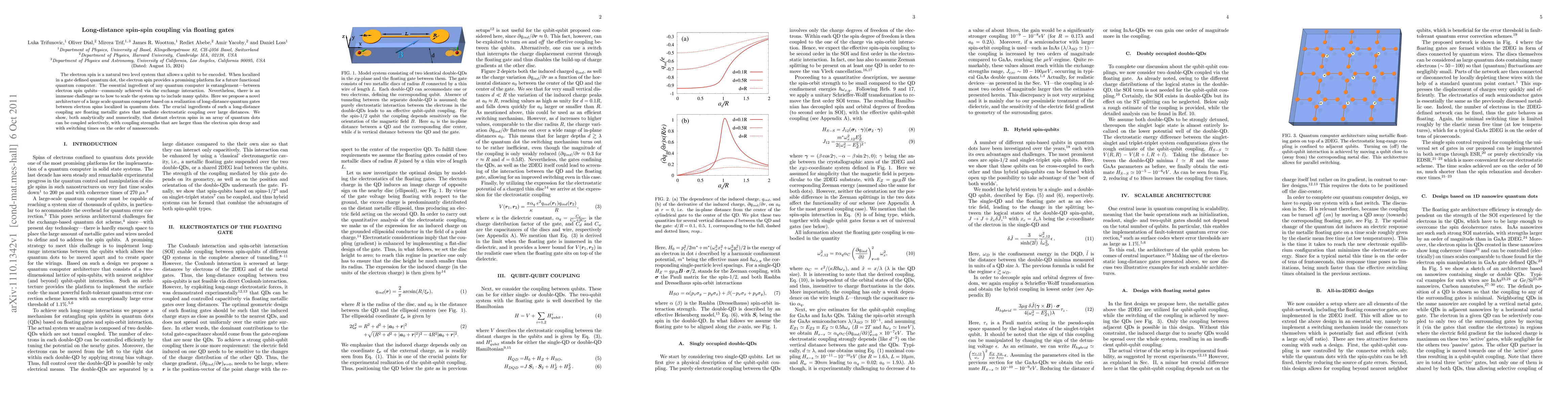 This paper proposes a novel architecture for large-scale quantum computing using floating metallic gates to achieve long-distance spin-spin coupling between electron spins in quantum dots, demonstrating both analytically and numerically the feasibility of selective, strong coupling over large distances with nanosecond switching times.