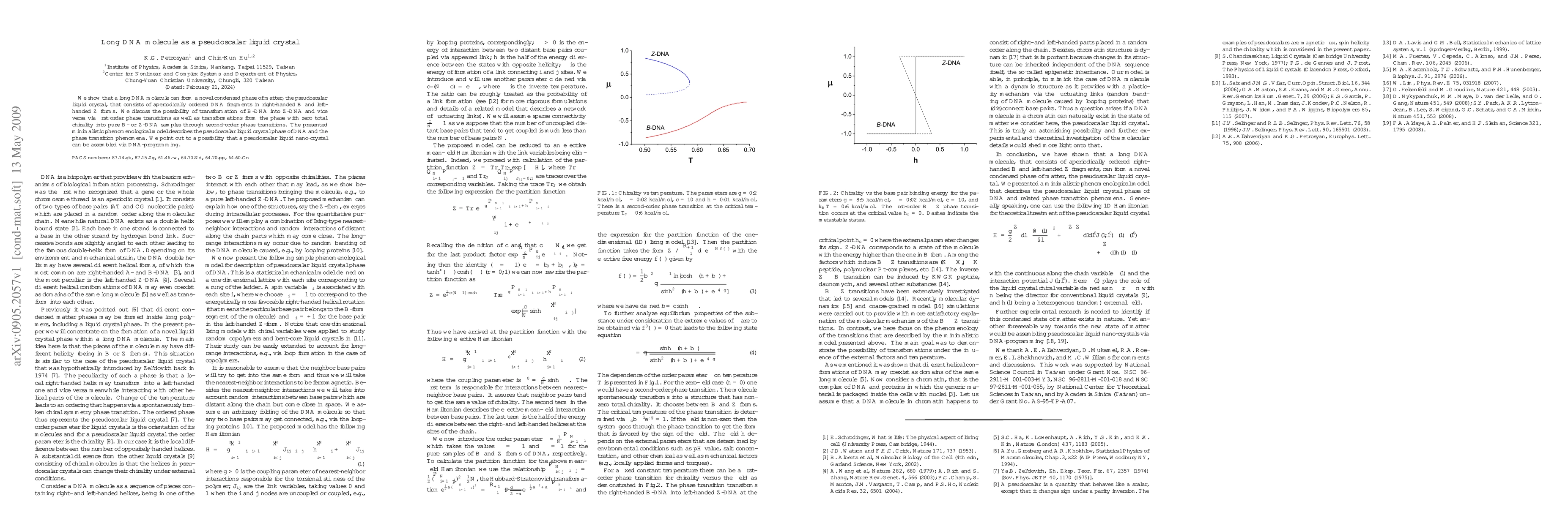 The paper introduces a phenomenological model describing the pseudoscalar liquid crystal phase of DNA and the associated phase transition phenomena, utilizing a one-dimensional lattice with nearest-neighbor and random long-range interactions.