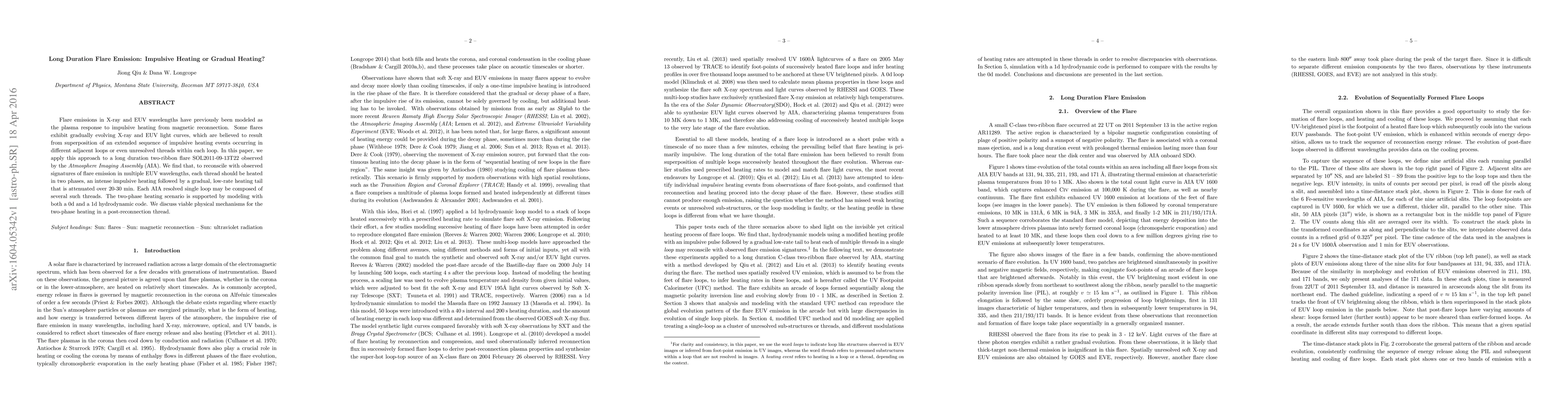 This paper investigates the heating mechanisms behind long duration solar flares, finding that each thread in the flare undergoes two-phase heating: an initial impulsive phase followed by a gradual, low-rate tail. This model reconciles observed EUV signatures and is supported by both zero-dimensional and 1D hydrodynamic simulations.