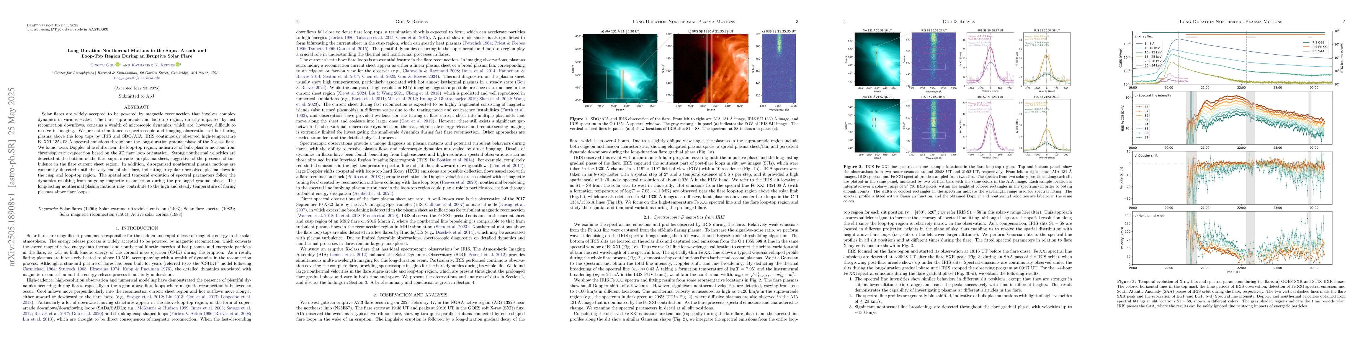 The paper presents a comprehensive analysis of long-duration nonthermal motions in the supra-arcade and loop-top regions during an eruptive solar flare using simultaneous spectroscopic and imaging observations.