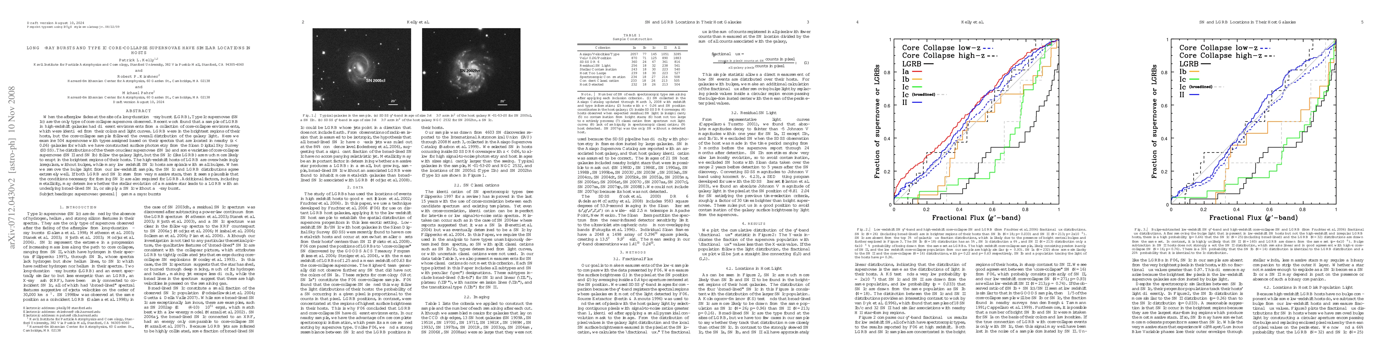Long gamma-ray bursts and Type Ic core collapse supernovae share similar host environments, with many found in brightest regions of their galaxies, suggesting a common origin from massive stars.