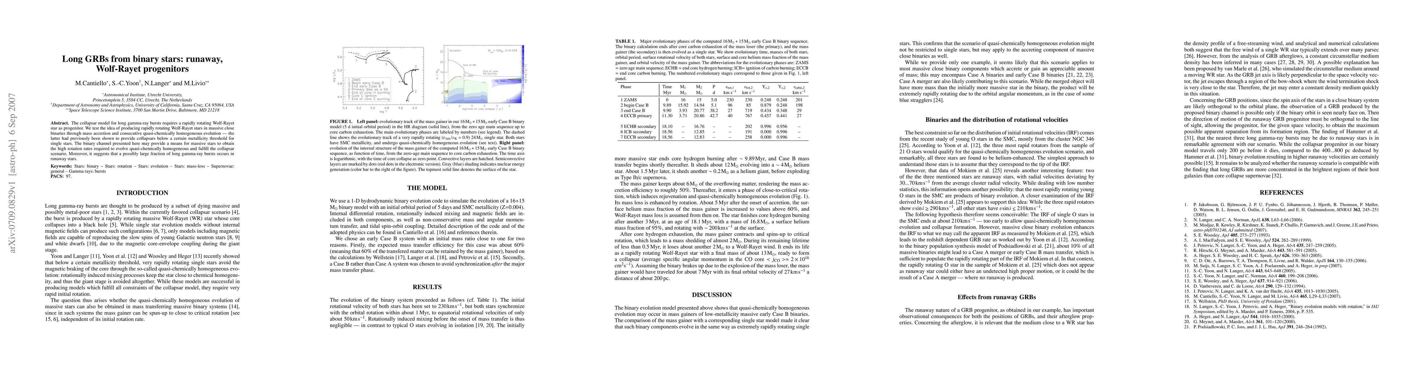 This paper explores the formation of long gamma-ray bursts (GRBs) in massive binary stars, suggesting that rapid rotation in Wolf-Rayet stars, achieved through mass accretion in close binaries, can lead to the collapsar model. It posits that a significant portion of long GRBs may originate from runaway stars.