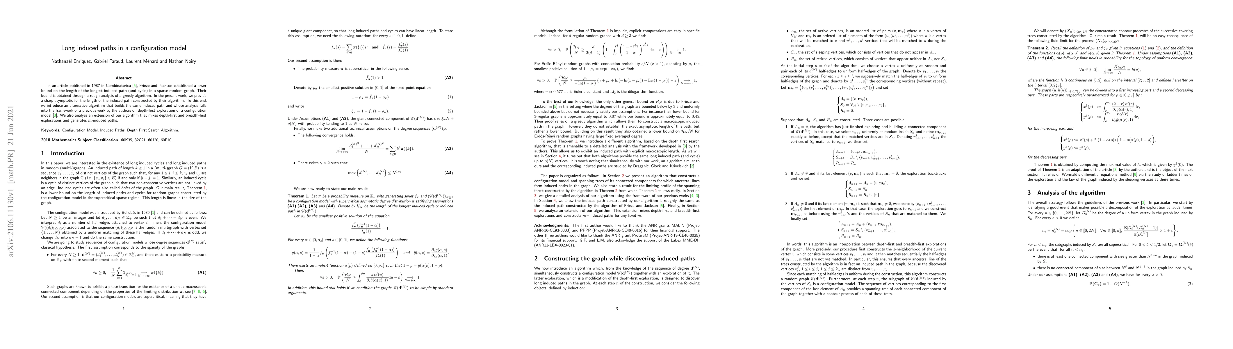 This paper refines the lower bound on the longest induced path in a sparse random graph established by Frieze and Jackson, providing a sharp asymptotic result using a new algorithm based on depth-first exploration of a configuration model. It also extends the analysis to generate multiple induced paths through a hybrid exploration method.