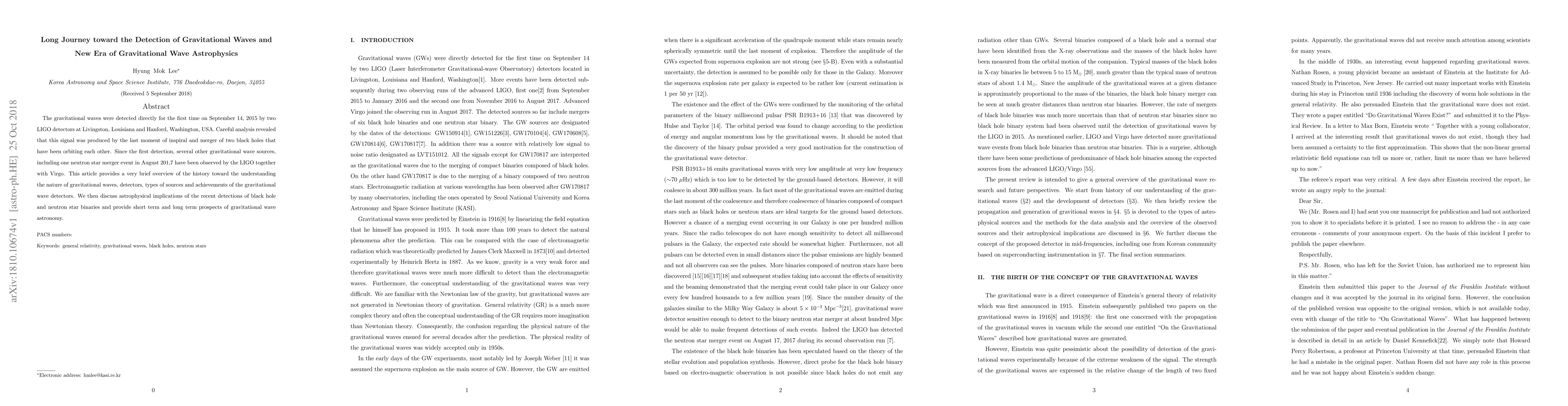 This paper reviews the history and detection of gravitational waves, highlighting the first direct observation in 2015 from merging black holes and subsequent detections, including a neutron star merger. It discusses the implications for astrophysics and future prospects in gravitational wave astronomy.
