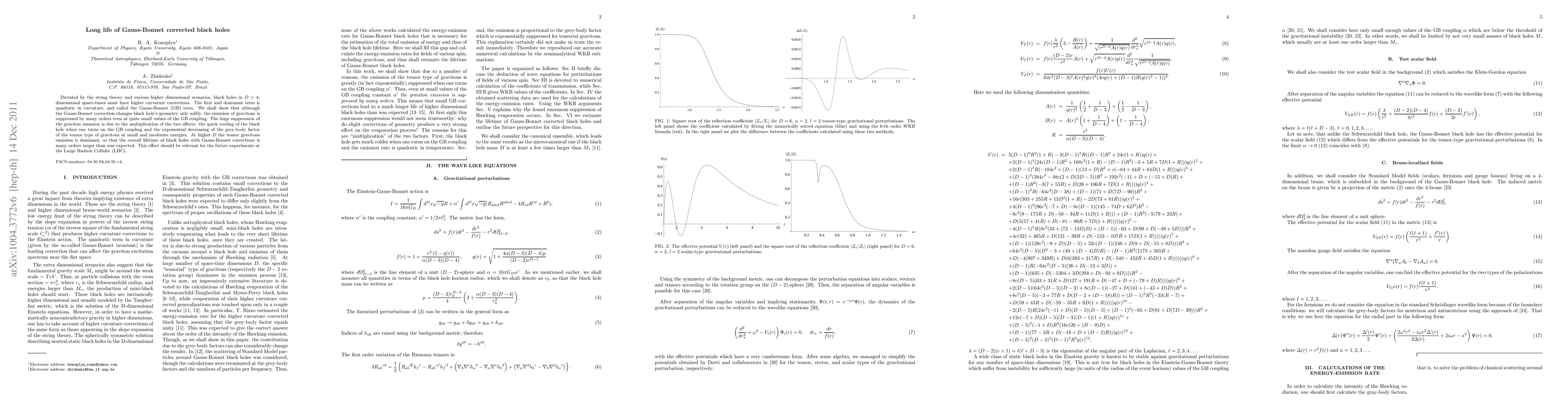 Dictated by the string theory and various higher dimensional scenarios, black holes in $D>4$-dimensional space-times must have higher curvature corrections. The first and dominant term is quadratic in curvature, and called the Gauss-Bonnet (GB) term. We shall show that although the Gauss-Bonnet correction changes black hole's geometry only softly, the emission of gravitons is suppressed by many orders even at quite small values of the GB coupling. The huge suppression of the graviton emission is due to the multiplication of the two effects: the quick cooling of the black hole when one turns on the GB coupling and the exponential decreasing of the grey-body factor of the tensor type of gravitons at small and moderate energies. At higher $D$ the tensor gravitons emission is dominant, so that the overall lifetime of black holes with Gauss-Bonnet corrections is many orders larger than was expected. This effect should be relevant for the future experiments at the Large Hadron Collider (LHC). Keywords: Hawking radiation, black hole evaporation.