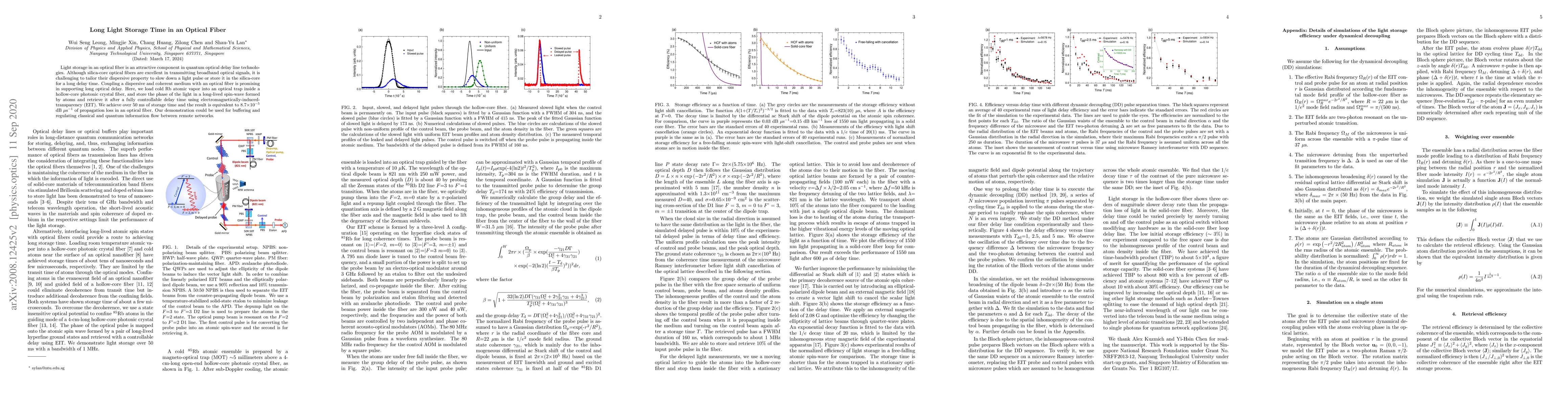 Light storage in an optical fiber is an attractive component in quantum optical delay line technologies. Although silica-core optical fibers are excellent in transmitting broadband optical signals, it is challenging to tailor their dispersive property to slow down a light pulse or store it in the silica-core for a long delay time. Coupling a dispersive and coherent medium with an optical fiber is promising in supporting long optical delay. Here, we load cold Rb atomic vapor into an optical trap inside a hollow-core photonic crystal fiber, and store the phase of the light in a long-lived spin-wave formed by atoms and retrieve it after a fully controllable delay time using electromagnetically-induced-transparency (EIT). We achieve over 50 ms of storage time and the result is equivalent to 8.7x10^-5 dB s^-1 of propagation loss in an optical fiber. Our demonstration could be used for buffering and regulating classical and quantum information flow between remote networks.