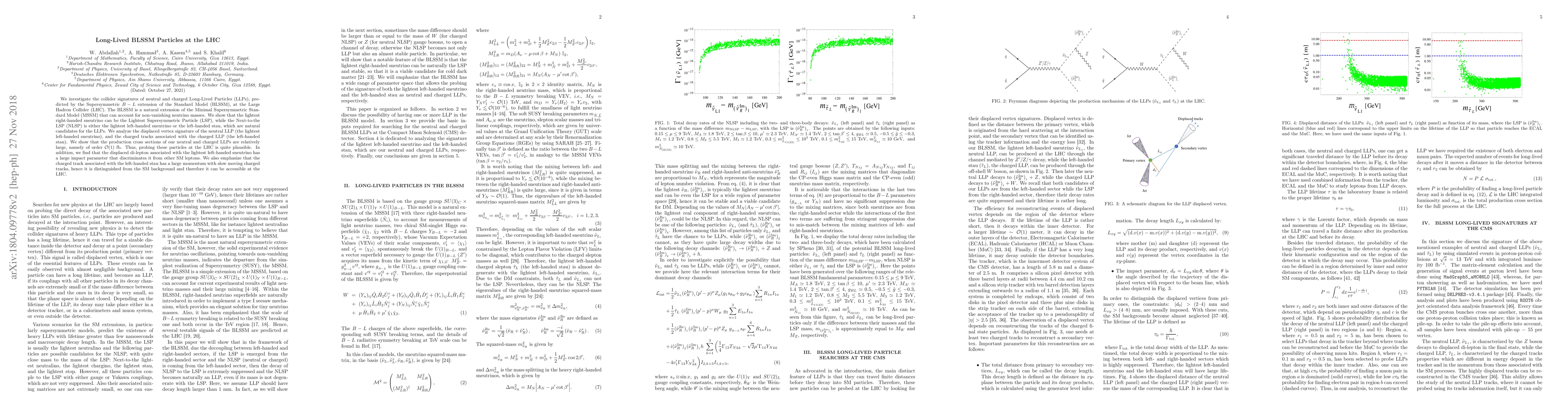 This paper examines the collider signatures of Long-Lived Particles (LLPs) predicted by the BLSSM, focusing on the lightest right-handed sneutrino and left-handed stau at the LHC. It finds large production cross sections for these LLPs, making them plausible targets for LHC experiments, with distinct displaced vertex and charged track signatures aiding their detection.