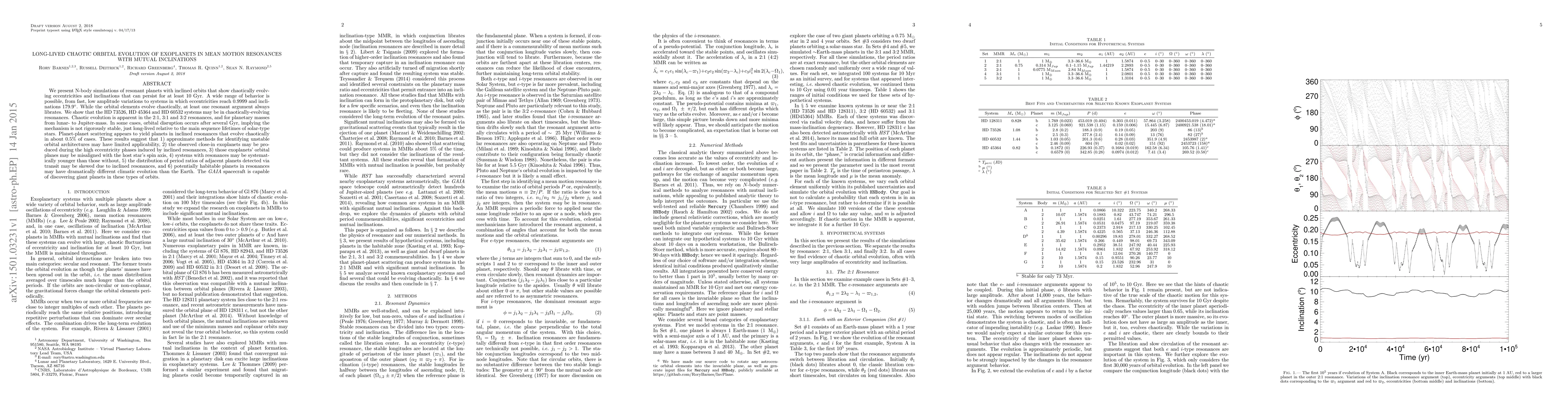 This paper presents N-body simulations demonstrating that resonant exoplanets with inclined orbits exhibit long-lived chaotic evolution of eccentricities and inclinations, potentially lasting up to 10 Gyr. The study suggests that such chaotic evolution may be common in planetary systems, with implications for exoplanet detection, stability, and climatic conditions.