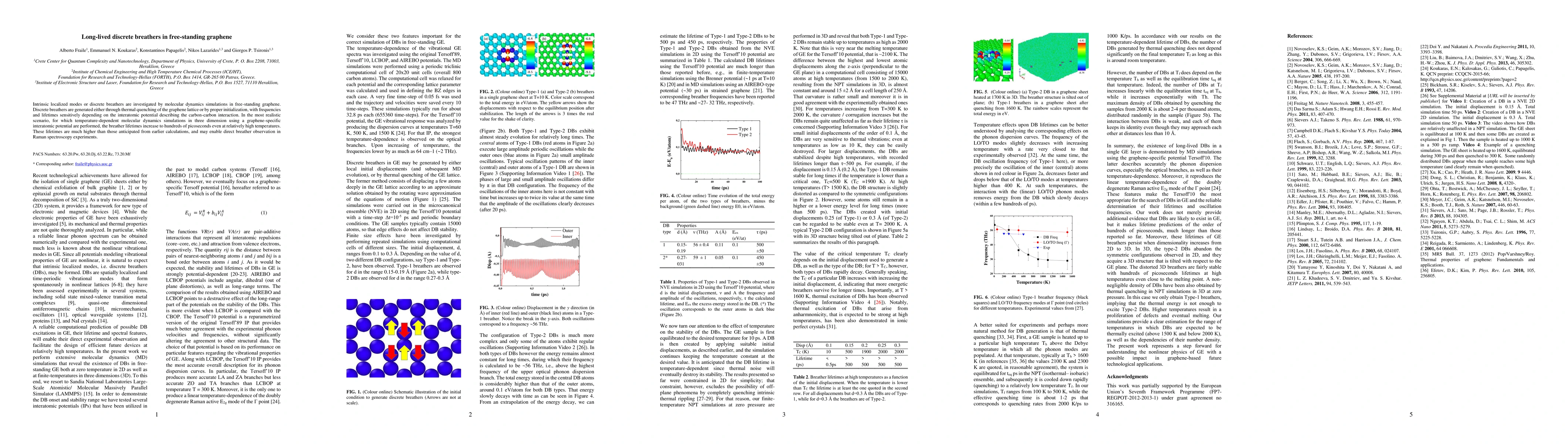 Research investigates intrinsic localized modes in free-standing graphene using molecular dynamics simulations, discovering long-lived discrete breathers with lifetimes reaching hundreds of picoseconds. These findings, achieved with a realistic graphene-specific interatomic potential, suggest breathers may be observable in Raman spectroscopy.